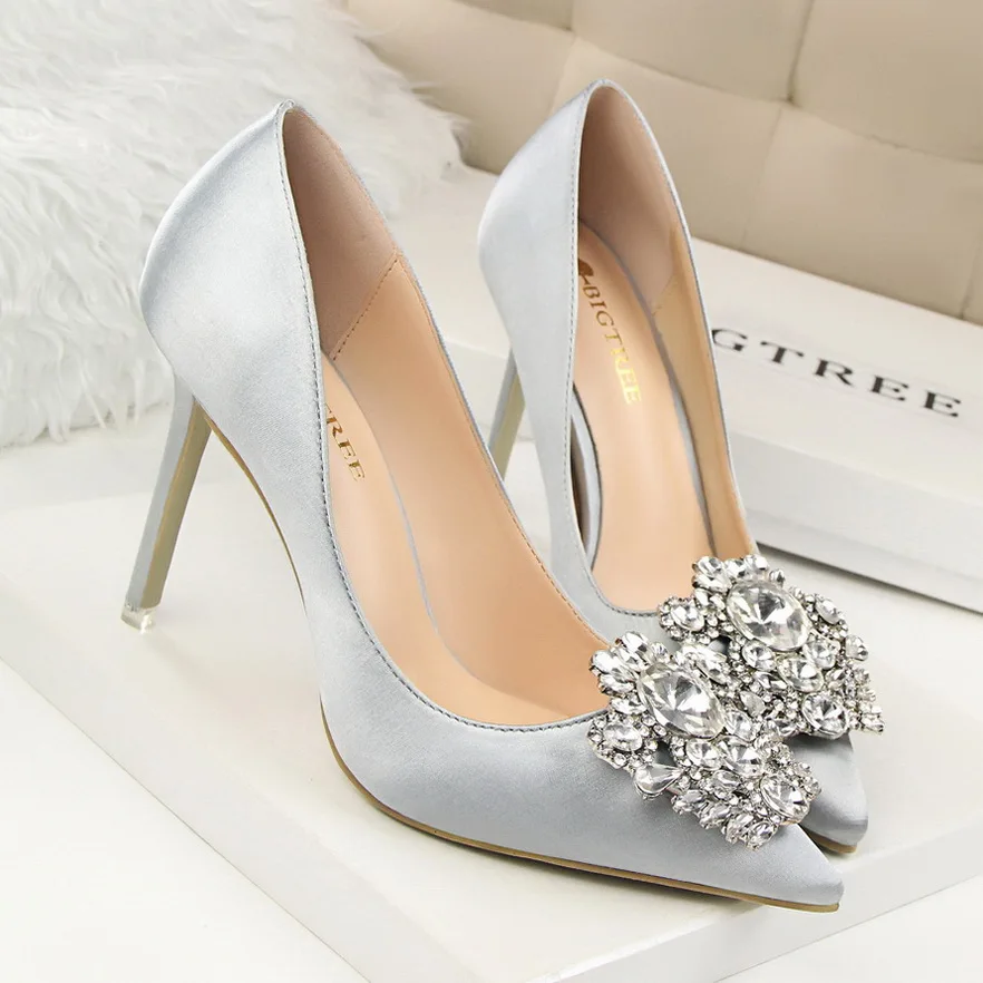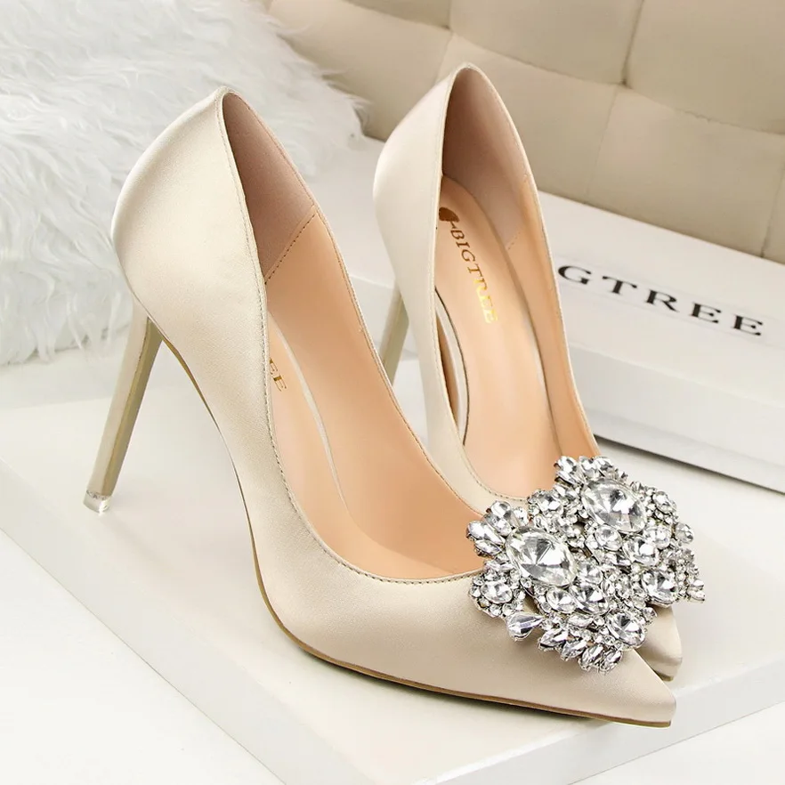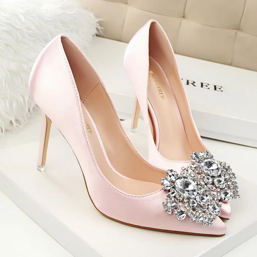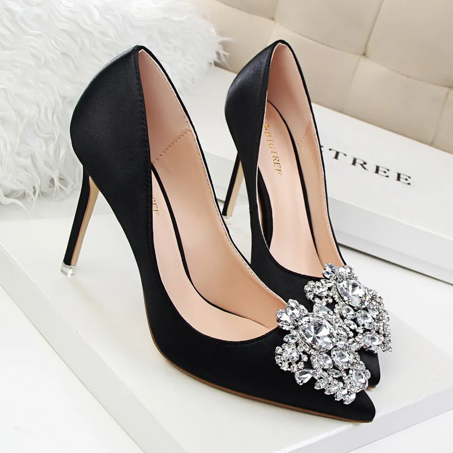 BIGTREE shoes women Crystal Glitter flower high heels 2020 new fashion party pointed toe pumps Rhinestone Stiletto elegant shoes
