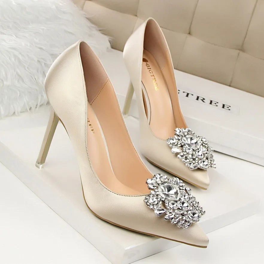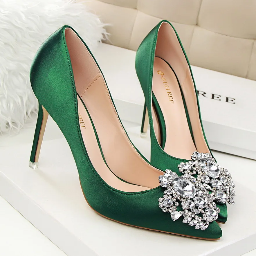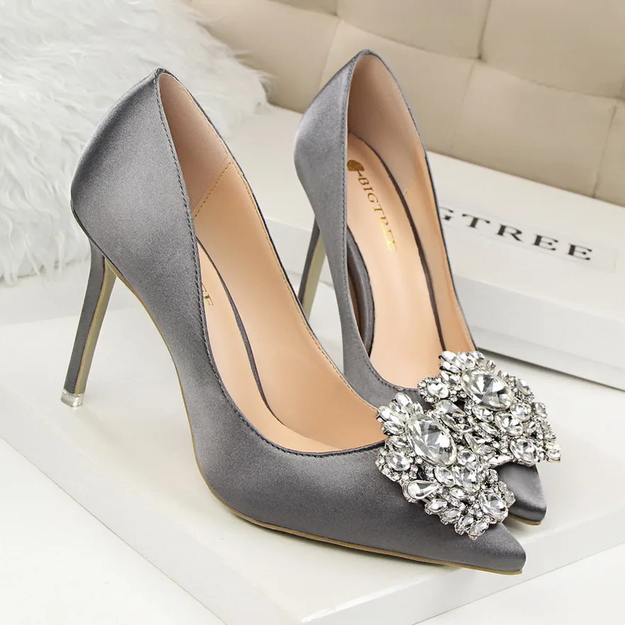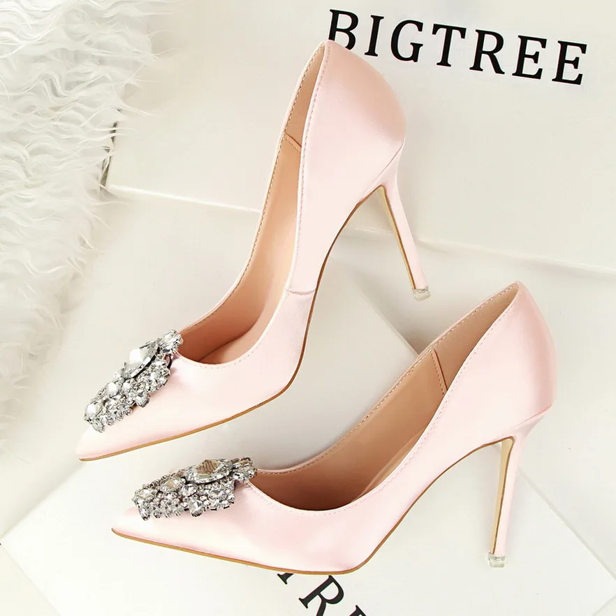 BIGTREE shoes women Crystal Glitter flower high heels 2020 new fashion party pointed toe pumps Rhinestone Stiletto elegant shoes