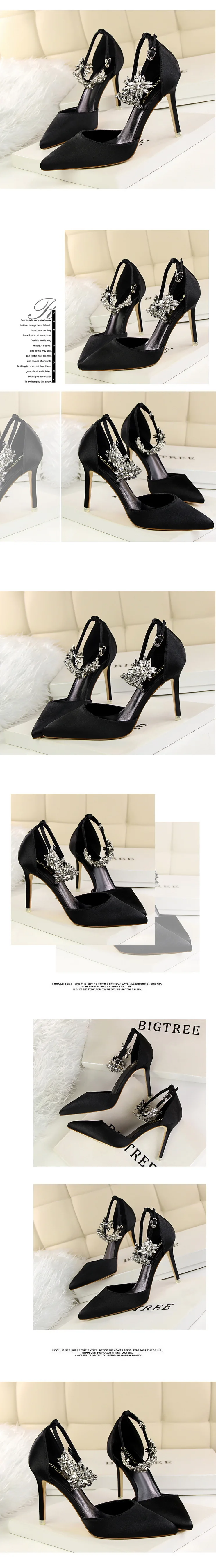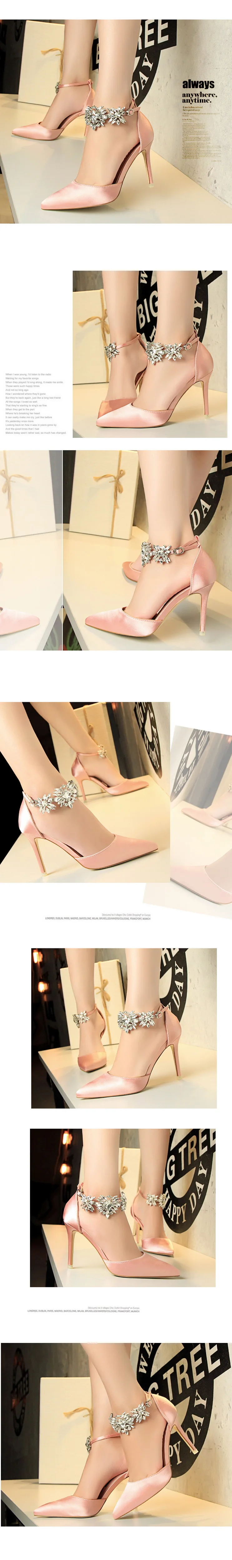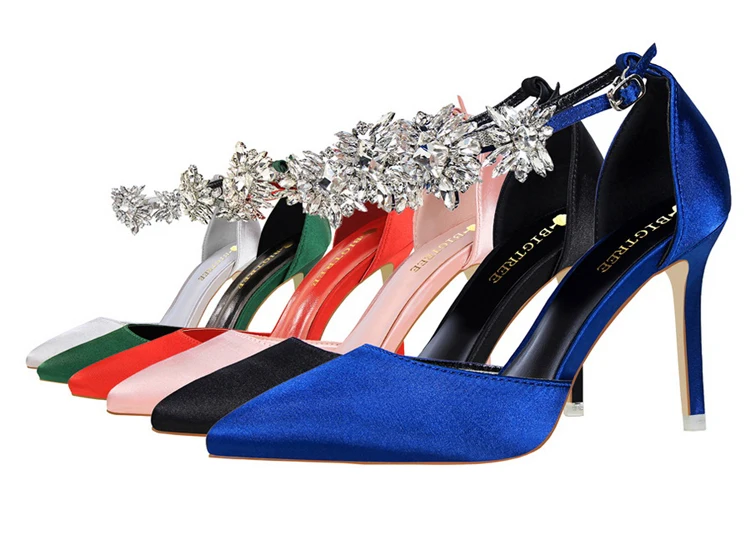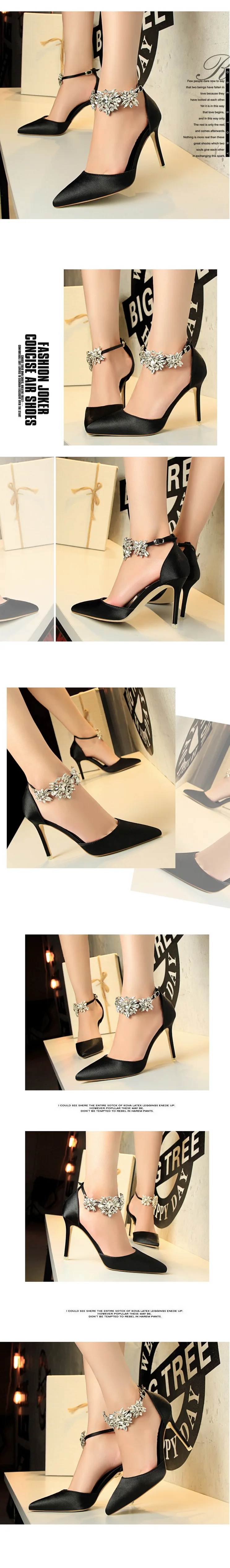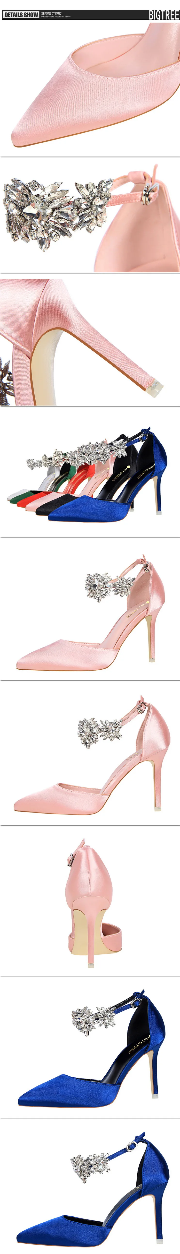 BIGTREE Shoes Women Sandals Luxury Rhinestones High Heels Women Pumps Satin High-heeled Sandals Ladies Shoes Women Party Shoes