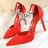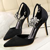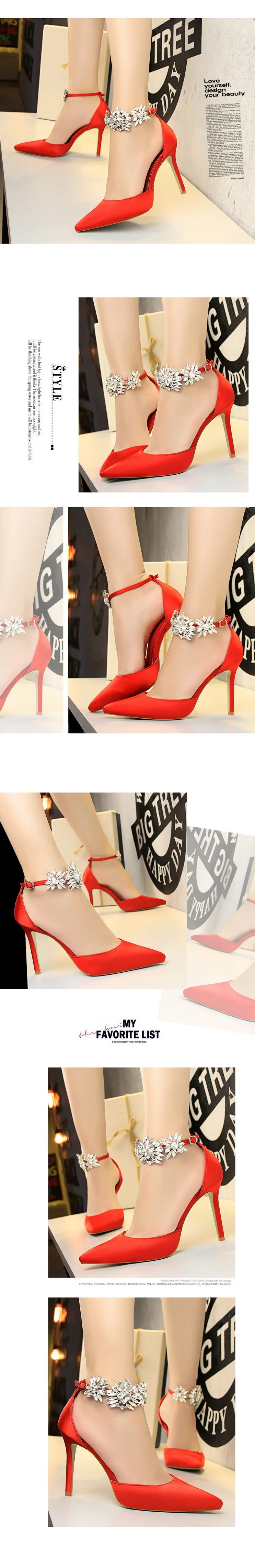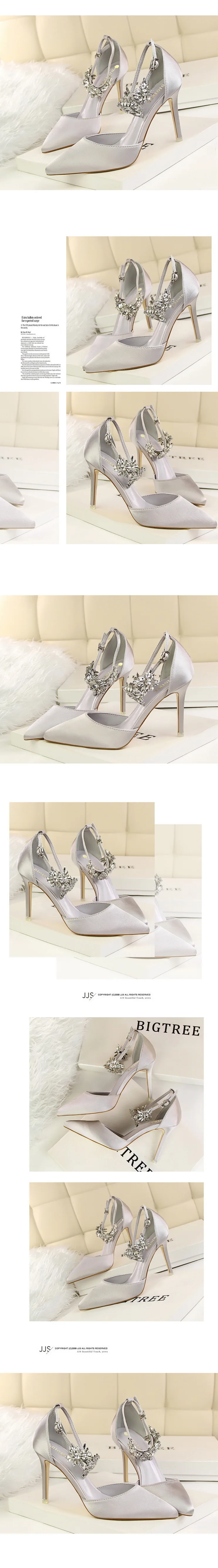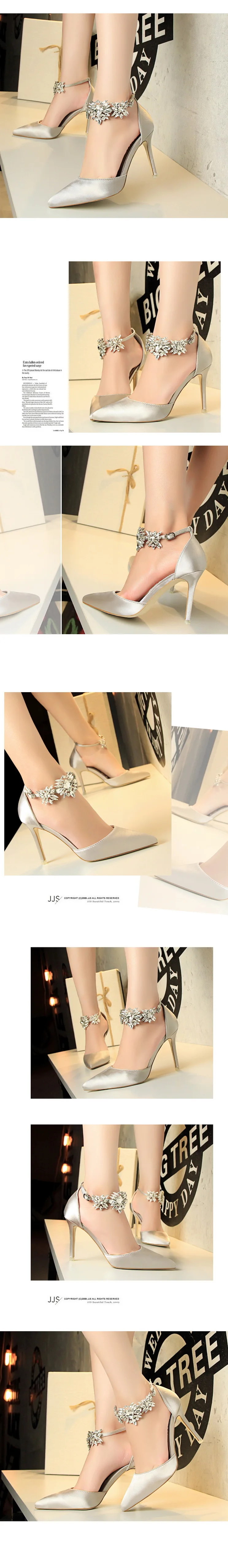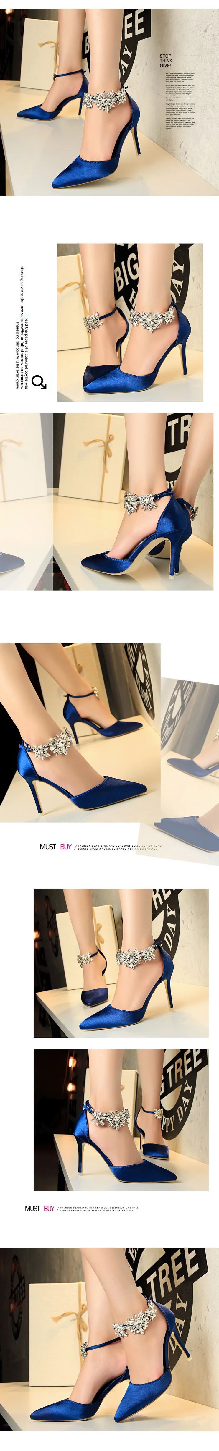 BIGTREE Shoes Women Sandals Luxury Rhinestones High Heels Women Pumps Satin High-heeled Sandals Ladies Shoes Women Party Shoes