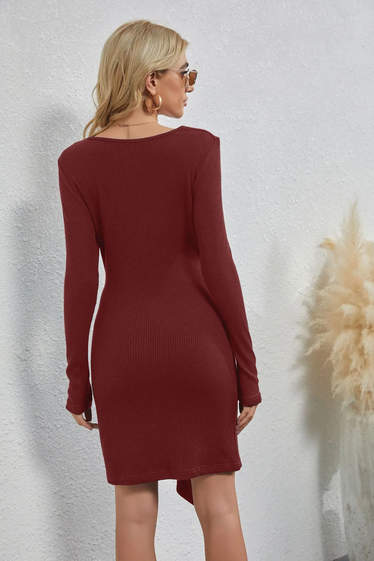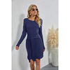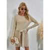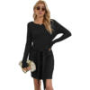 Black Round Neck Bag Hip Dress Women Elegant Waist Tie Design Knitted Slim Mini Dress Women Long-sleeved Knitted Top Dress