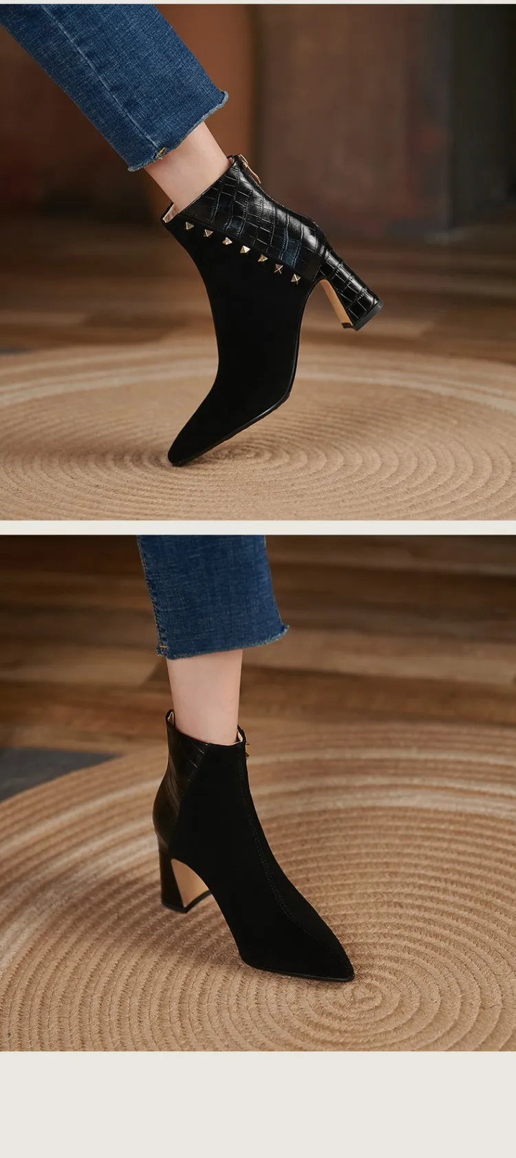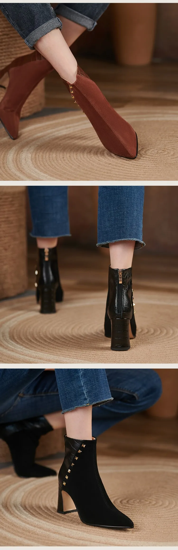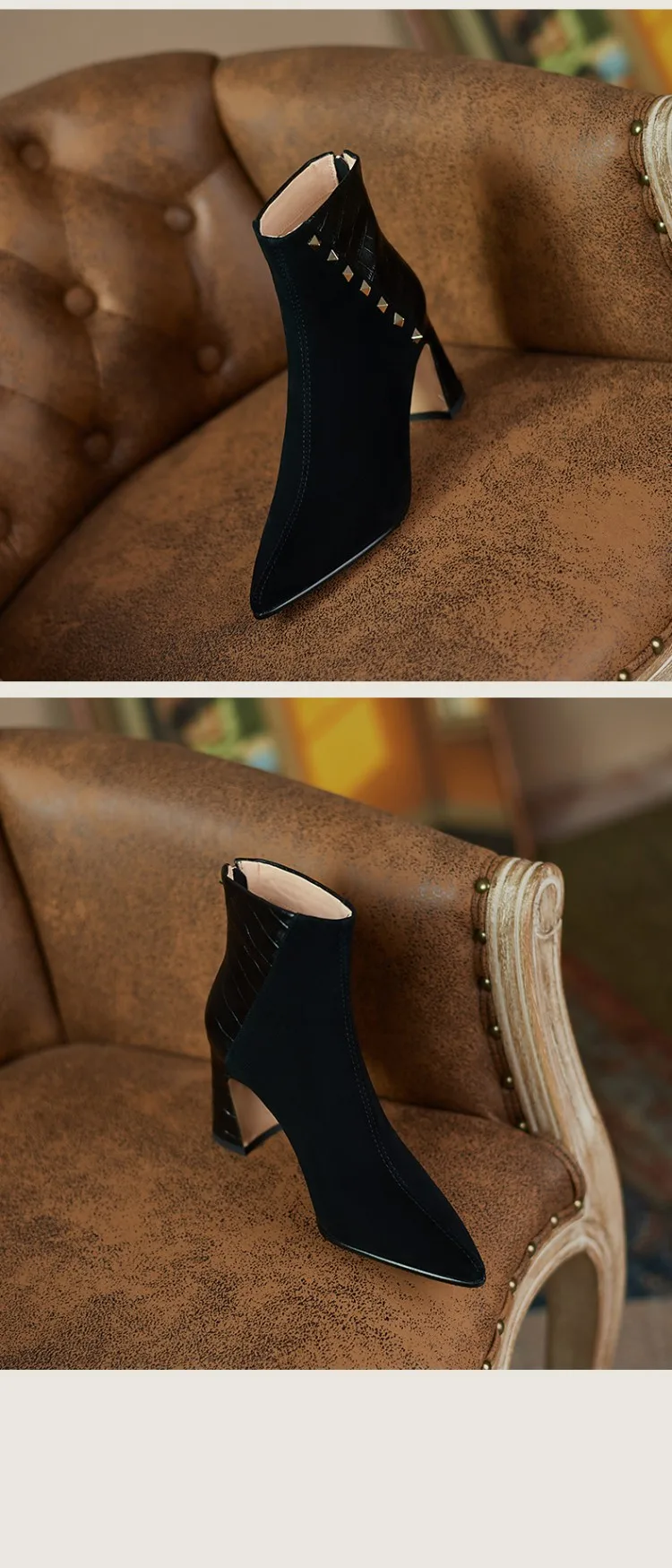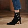 Black Suede Women Short Chelsea Boots Pointed Toe Punk Studded Botas Chunky High Heels Autumn Botines Femmes Winter Booties