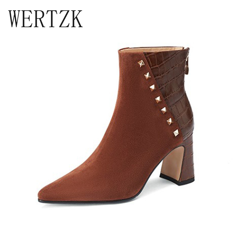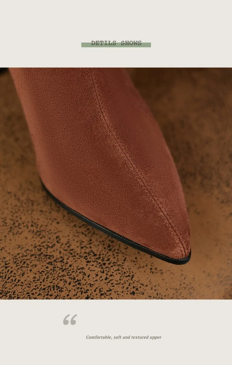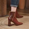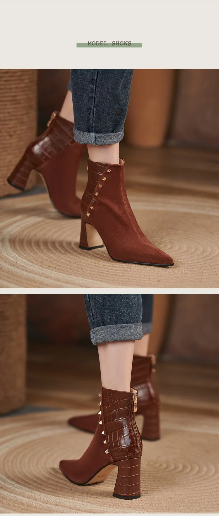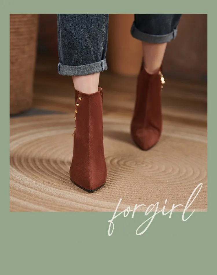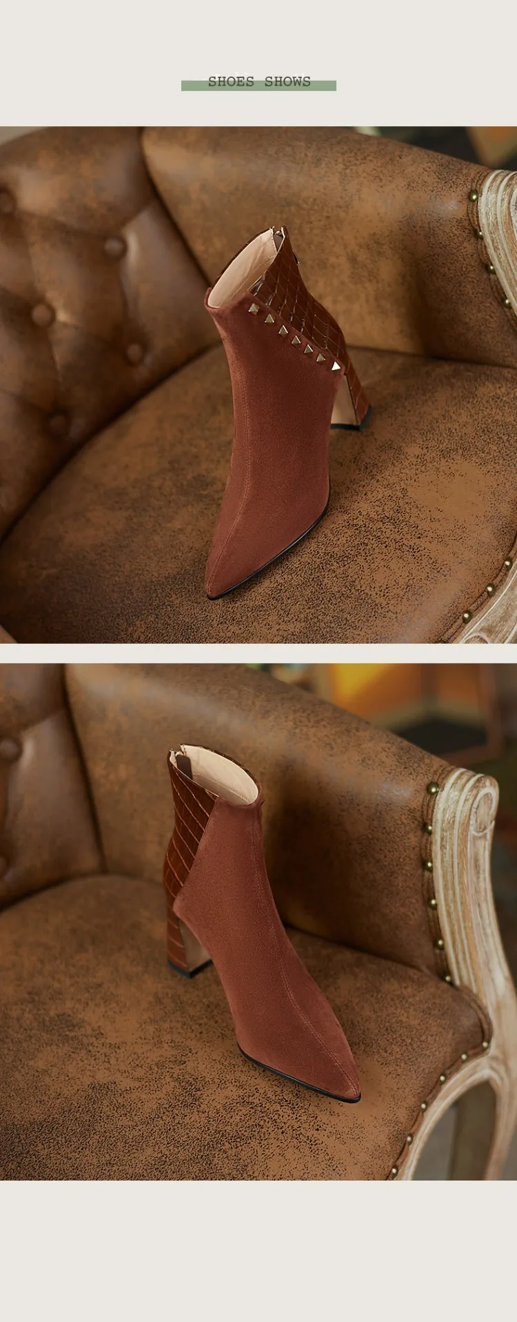 Black Suede Women Short Chelsea Boots Pointed Toe Punk Studded Botas Chunky High Heels Autumn Botines Femmes Winter Booties