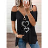 Blouse Women Sexy Cold Shoulder Heart Print Strap Tops V-neck Summer Vest Casual Short Sleeve Shirts Top Blouse