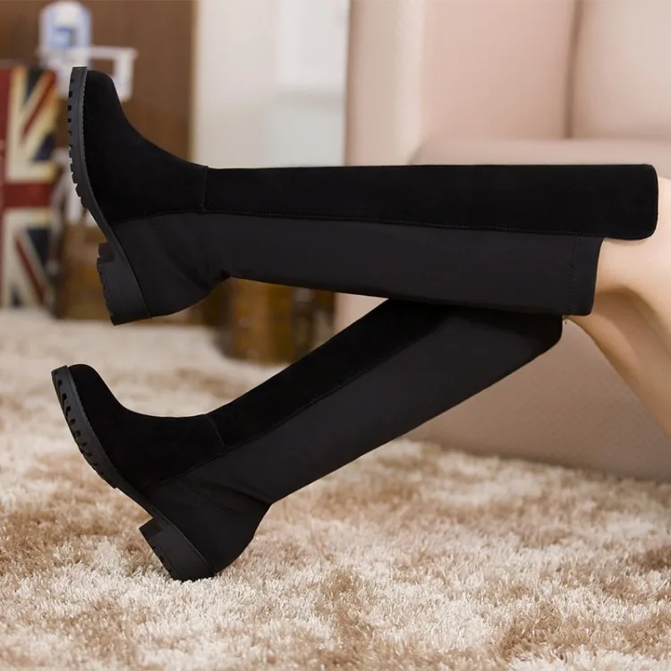 BLXQPY Botas Mujer Big Size 34-43 Brand Design Patch Color Over The Knee Boots Thick Sole Platform Slim Long Winter Autumn 66-6