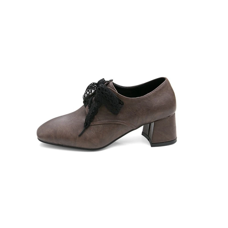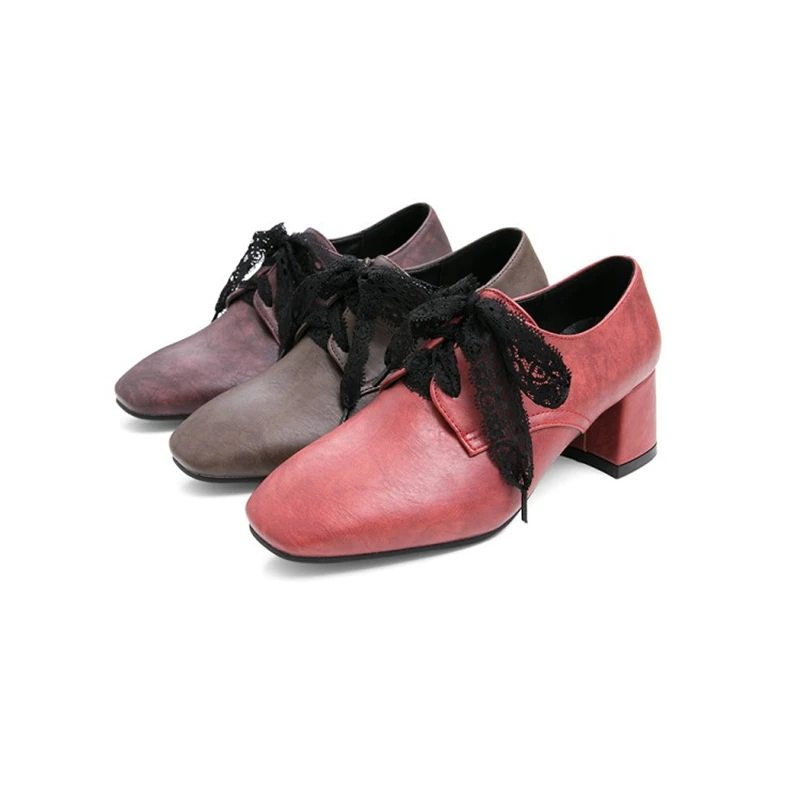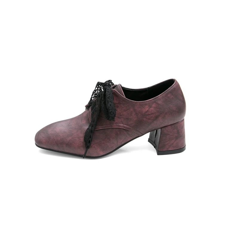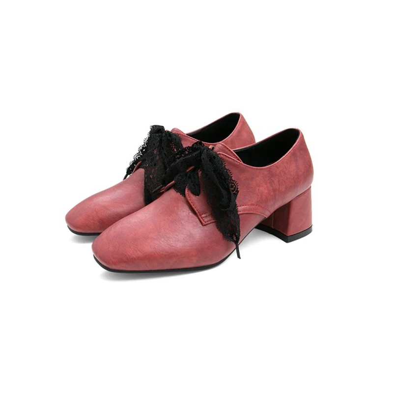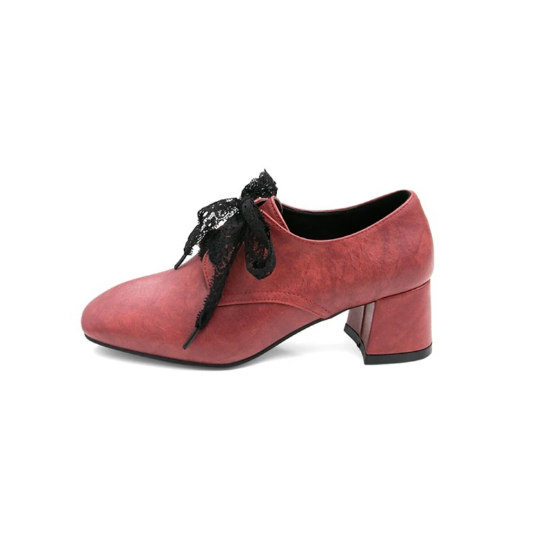 BLXQPYT 2020 New Women Pumps Lace up High heels Lady Patent leather Square toe Single Shoes Female small or Large 30-50 158-4