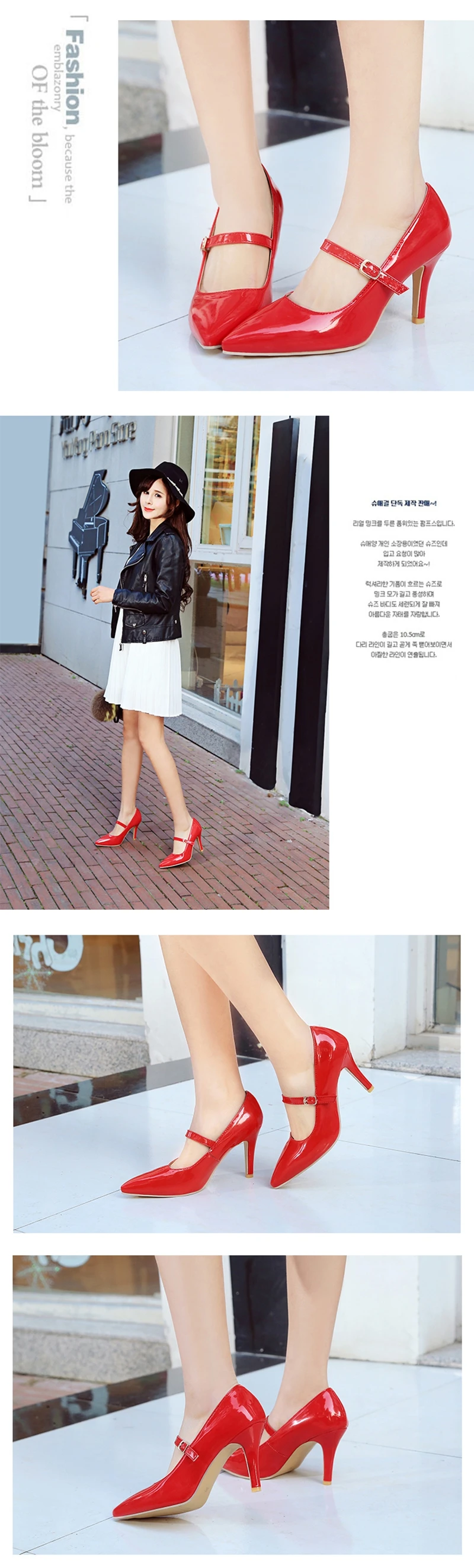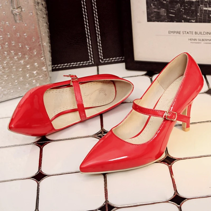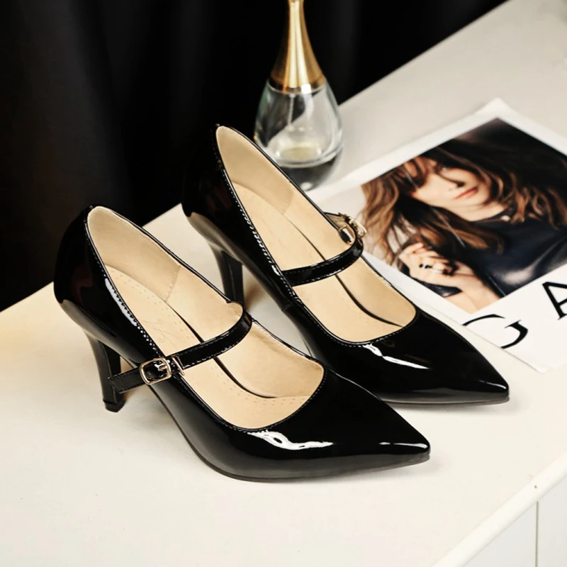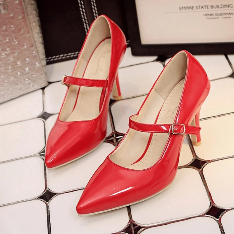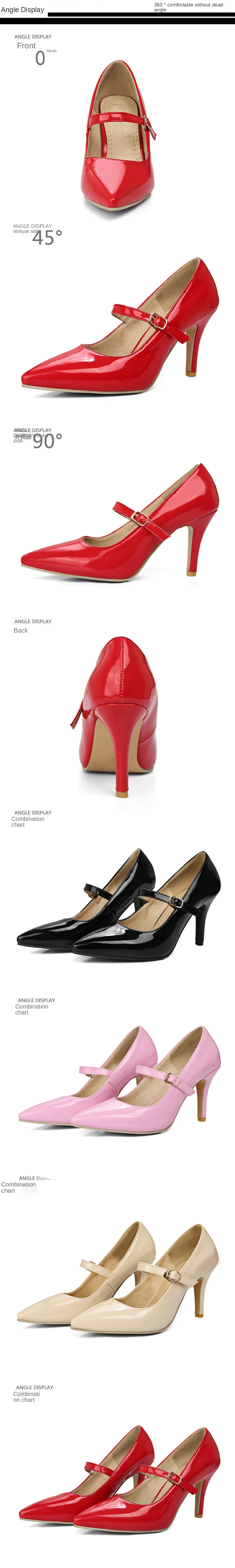 BLXQPYT 2021 High Heels Black Red Pink Woman Shoes Ladies Pumps Buckle Strap Female Heels Mary Janes Shoes Plus Size 33-54 435