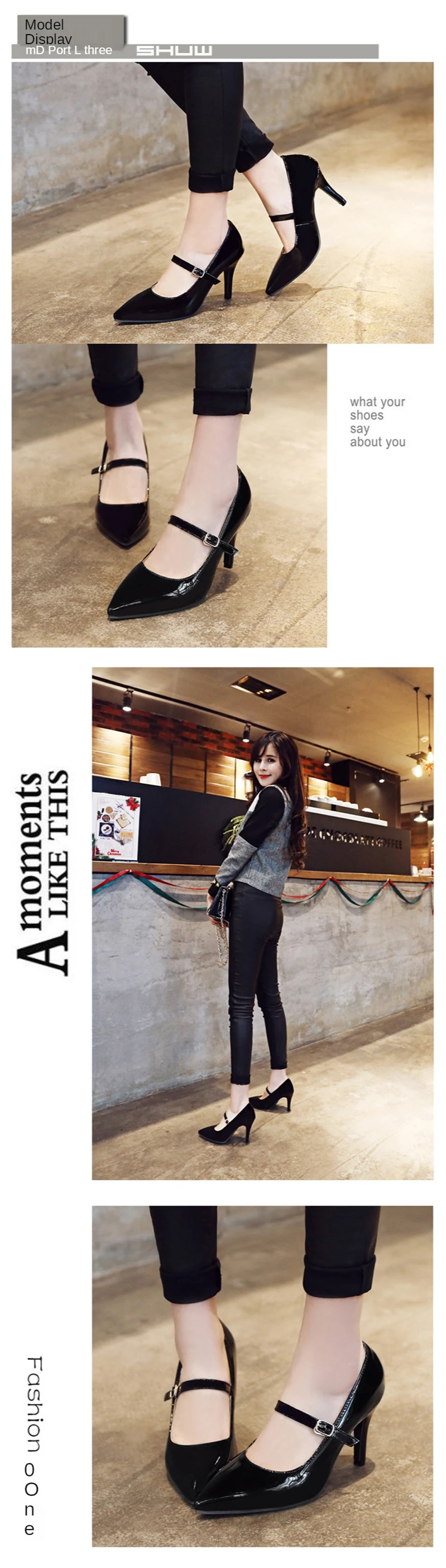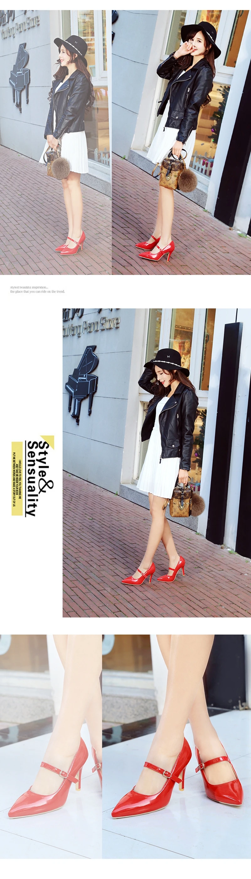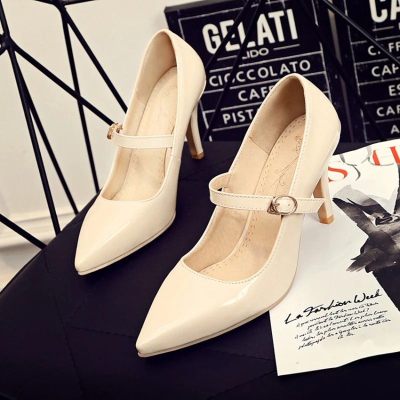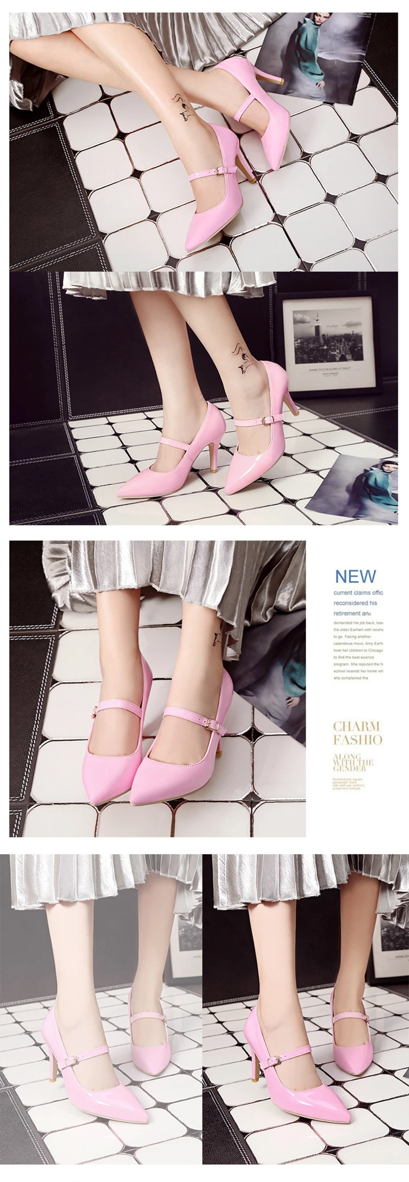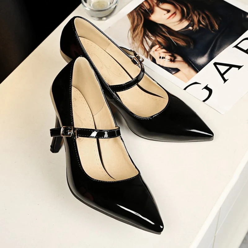 BLXQPYT 2021 High Heels Black Red Pink Woman Shoes Ladies Pumps Buckle Strap Female Heels Mary Janes Shoes Plus Size 33-54 435