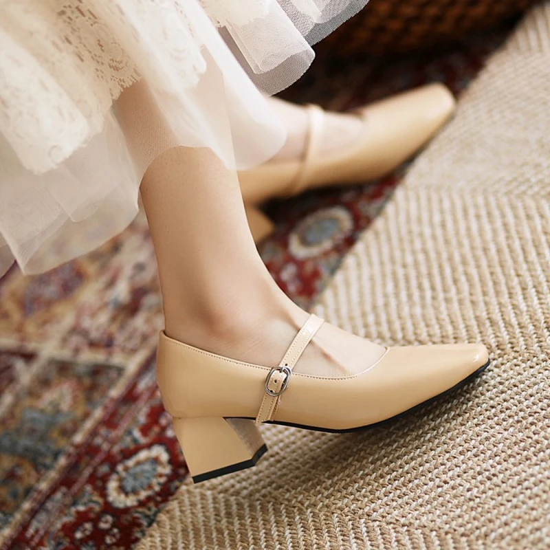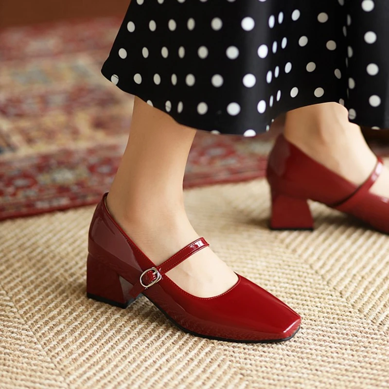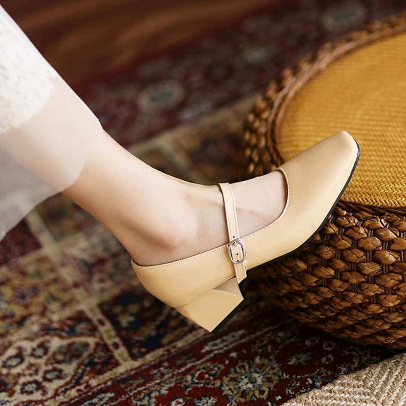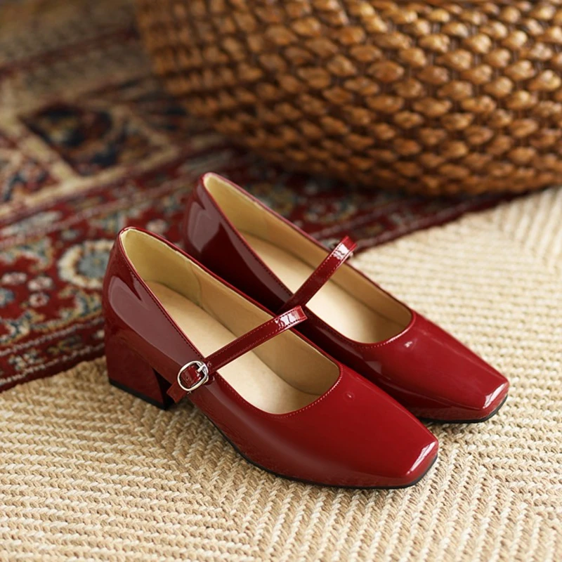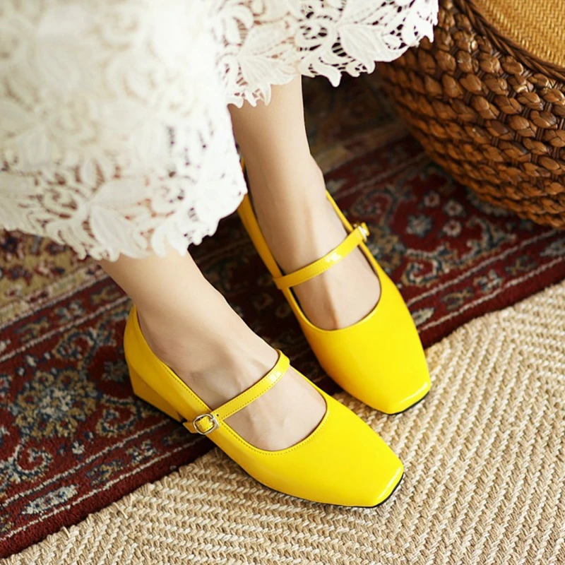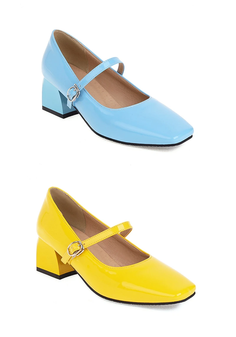 BLXQPYT 2021 Sweet Fashion Heels for Women Wedding Pumps Square Head Thick Heel with Five Color Candy Shoes Plus Size 28-52 272