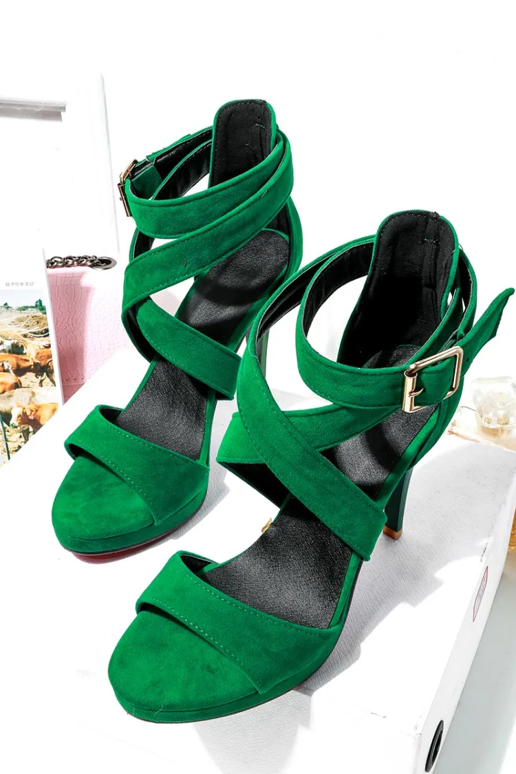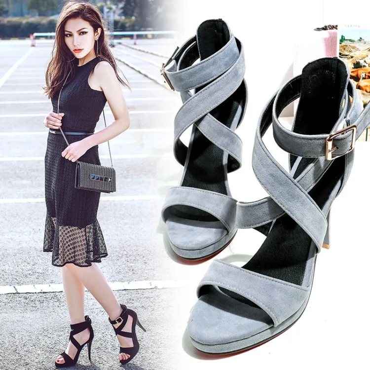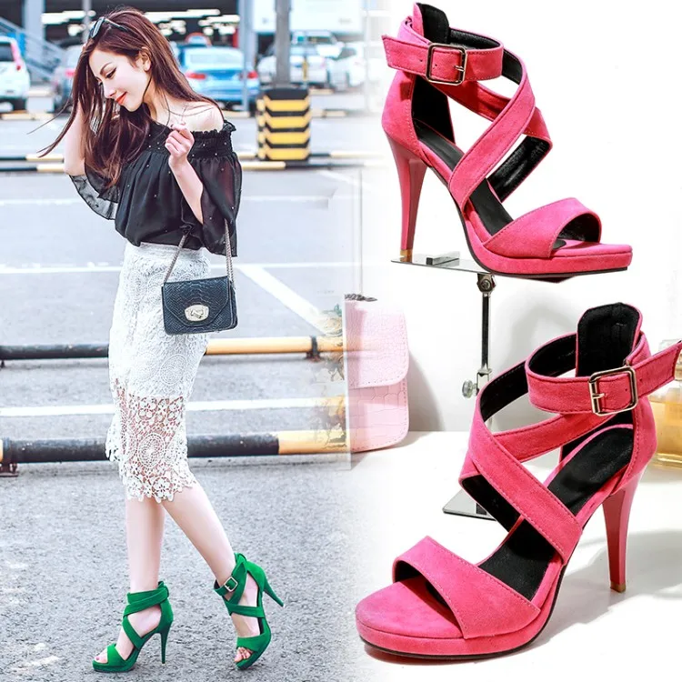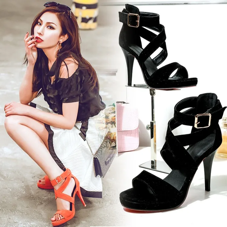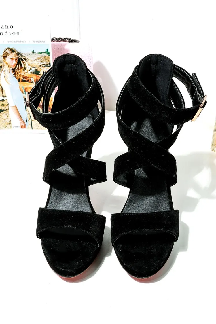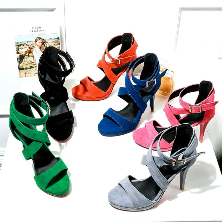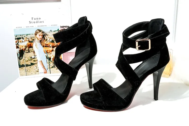 BLXQPYT Big Size 32-48 Fashion Party Red Sole Shoes Woman Sexy High Heels Summer Pumps Ankle Strap Sandals Women Shoes 8675-1