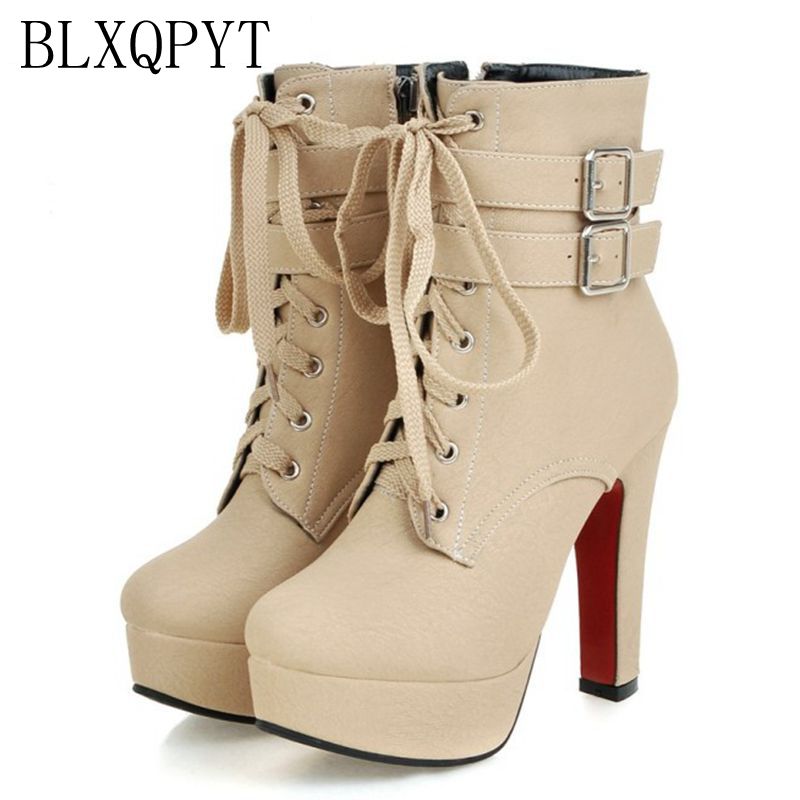 BLXQPYT Big size 33-47 short Boots shoes woman Mujer Fashion Ankle Boots Sexy high Heels Spring Autumn Winter Women Shoes X-2