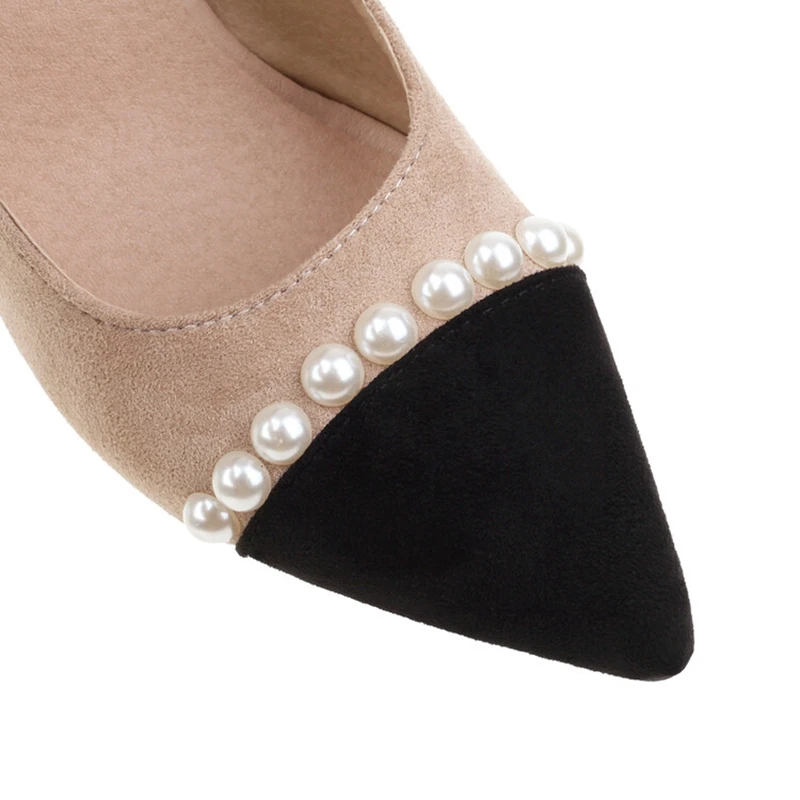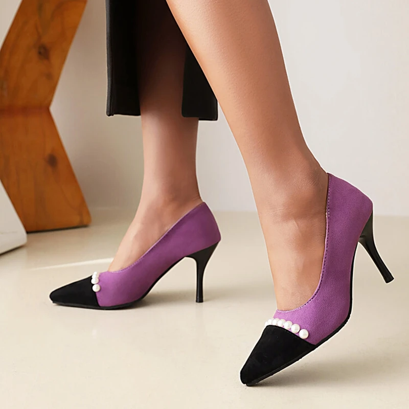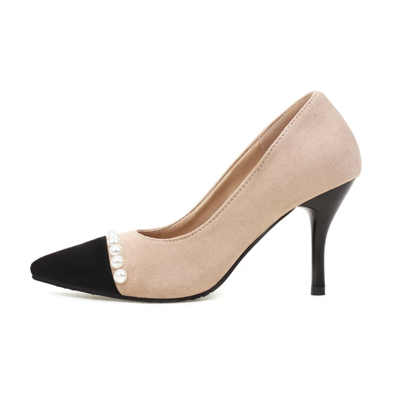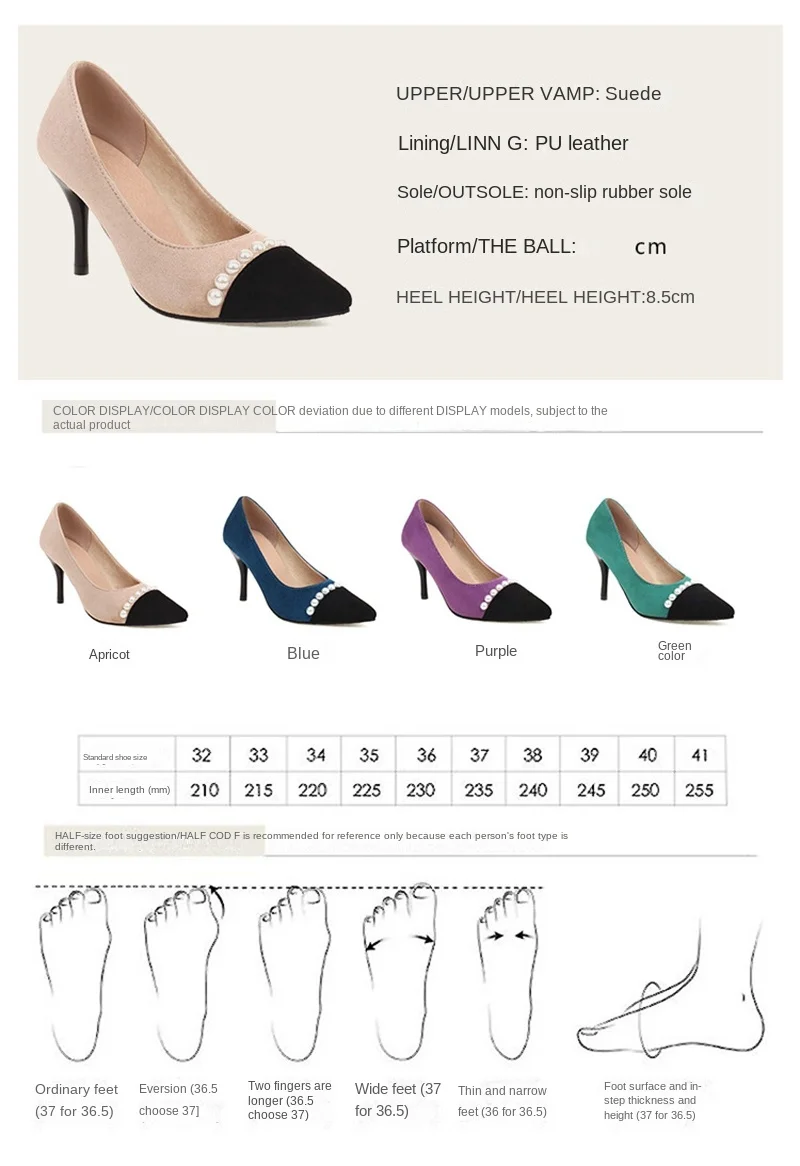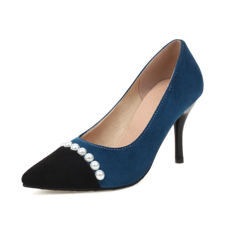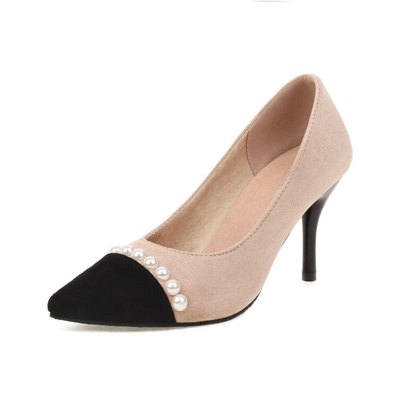 BLXQPYT Fashion Thin Heels Pearl Single Shoe Women Sexy Pointed Toe Pumps Party Wedding Ladies Dress Shoes Plus Size 47 48 850