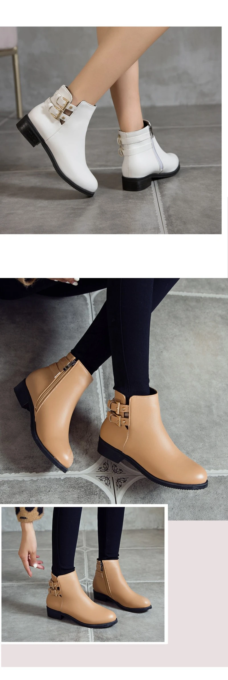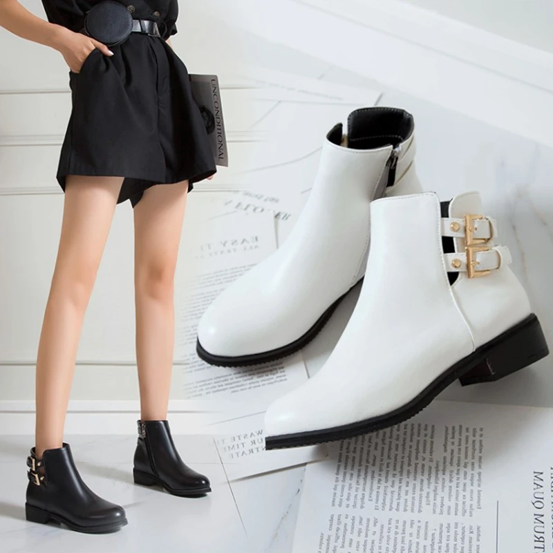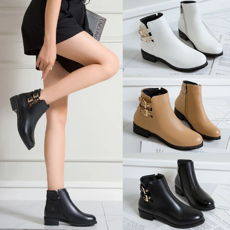 BLXQPYT Leather boots women Thick Heels Ankle Boots For Women Round Toe Winter PLus size 32- 48 Shoes Platform Boots 7104