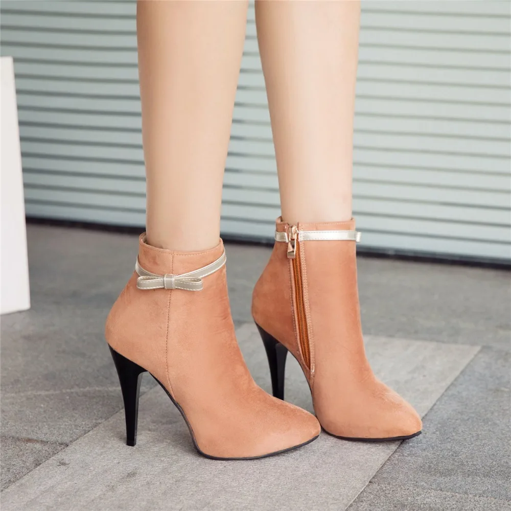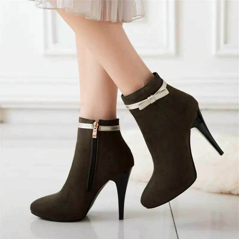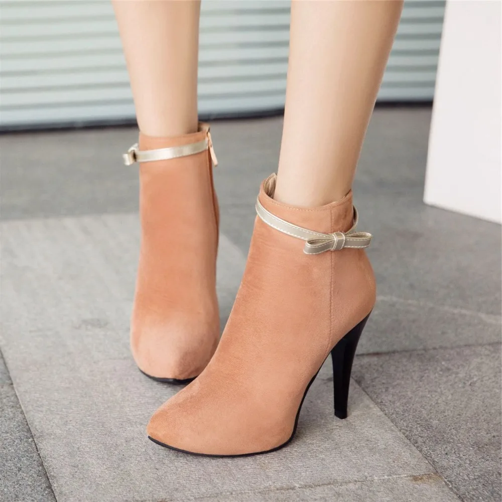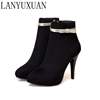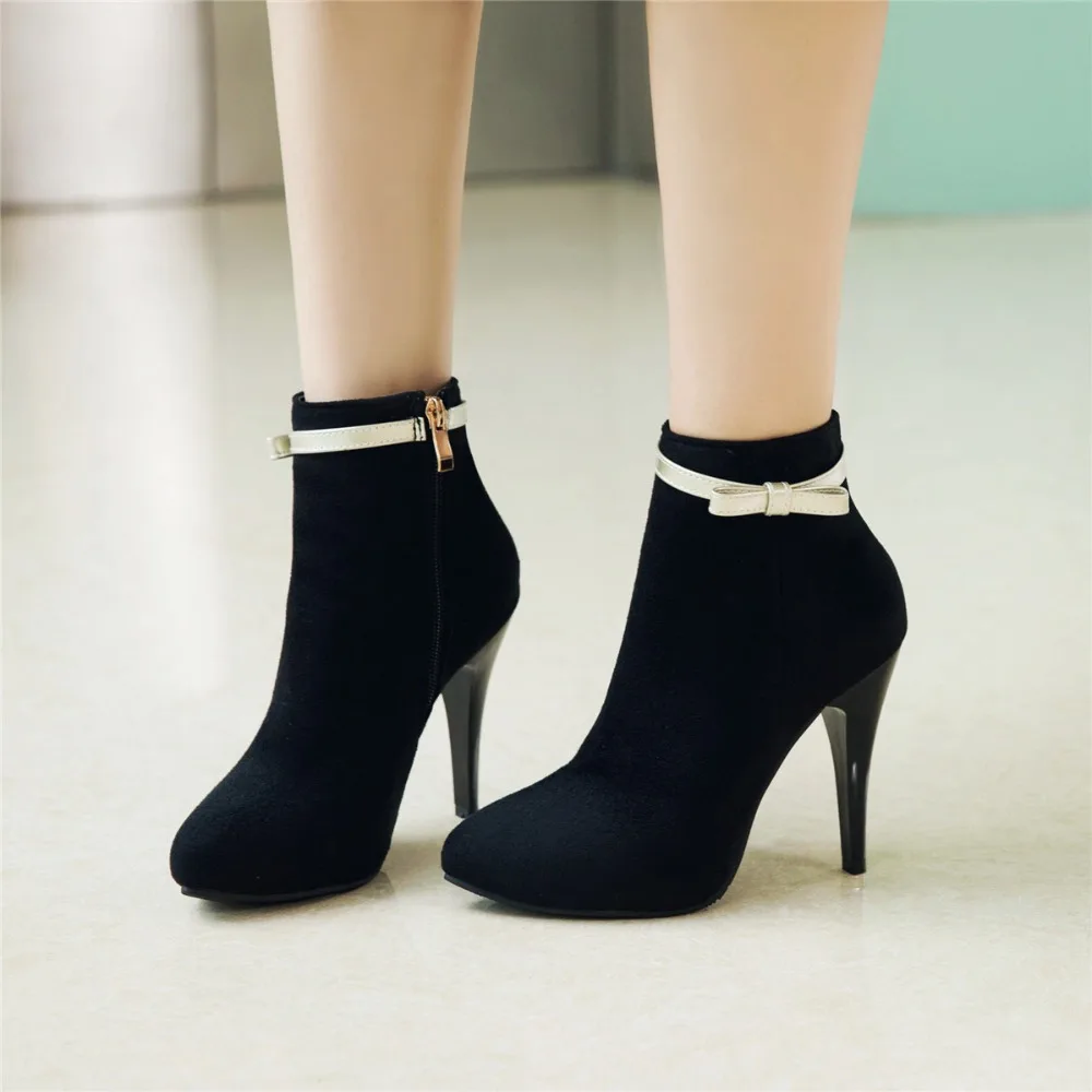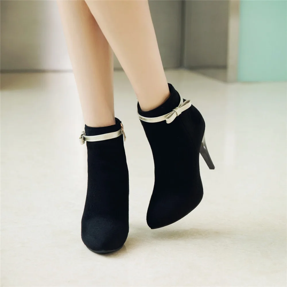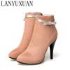 BLXQPYT New Big Size 33-50 Women High Heels ankle Short boots Autumn Winter Shoes Pointed Toe Platform Knight New Boots 2-5