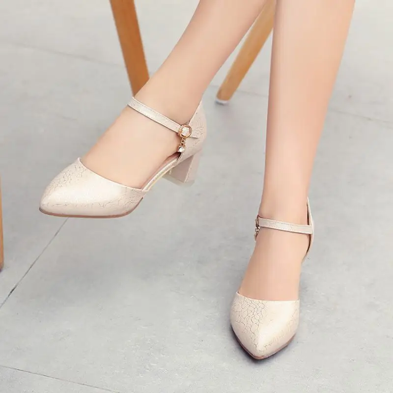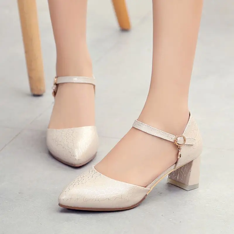 BLXQPYT New Sweet fashion Size 32-43 Women Wedding High Heels Sandals Ankle Strap Pointed Toe Pumps Party Shoes Woman 519