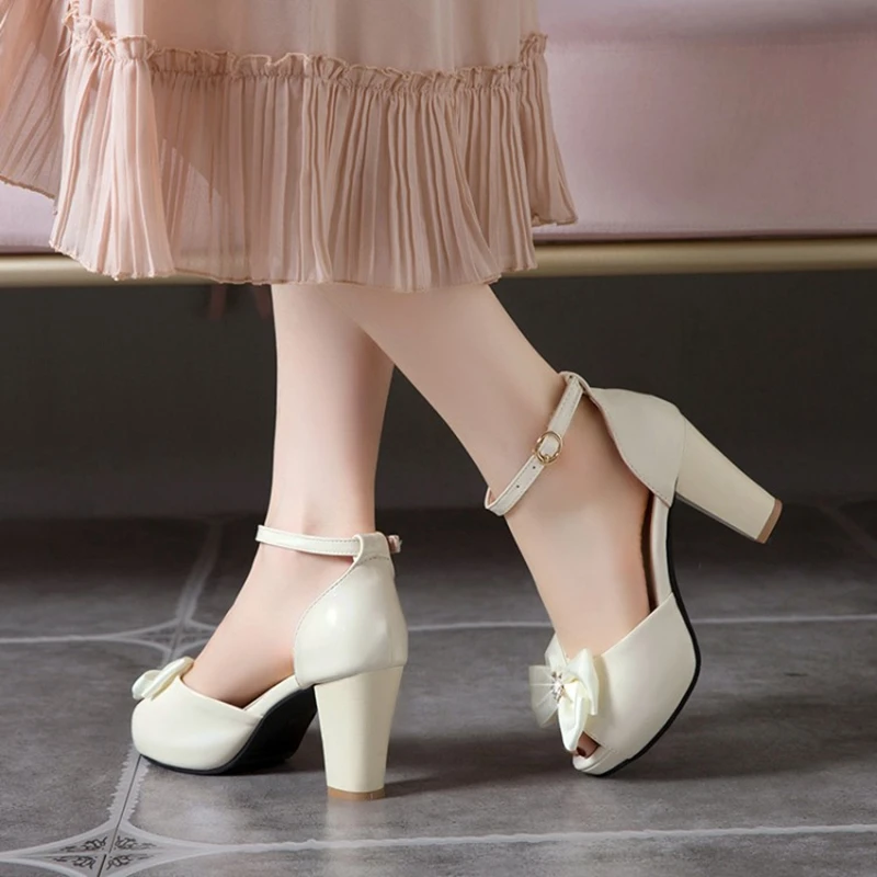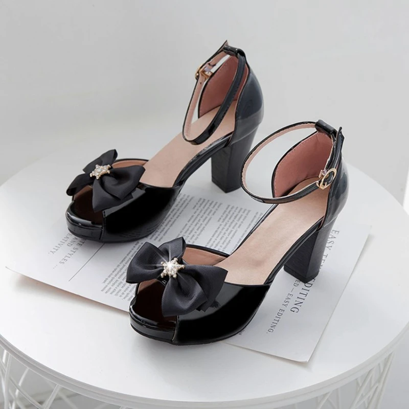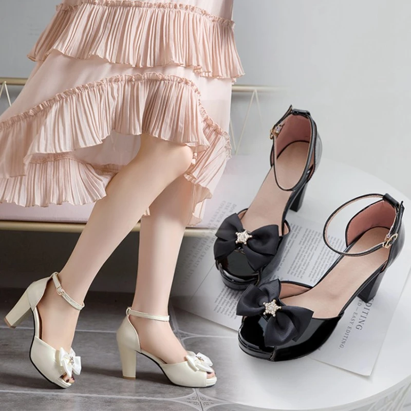 BLXQPYT Sandalias mujer 2020 Fashion Women Buckle Strap Summer High Heels Bowknot Peep Toe chunky heels 8CM Party Shoes D7-11