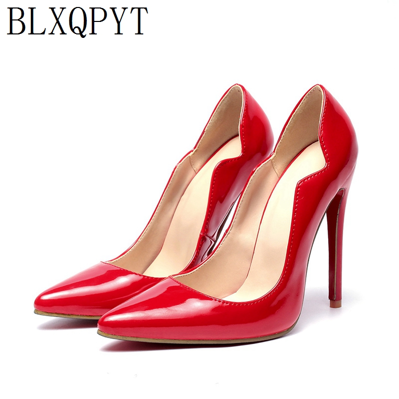 BLXQPYT Super Size 34-52 Patent Leather Pumps Fashion Office Women Sexy High Heels(12cm) Women's Wedding Shoes woman Party 116