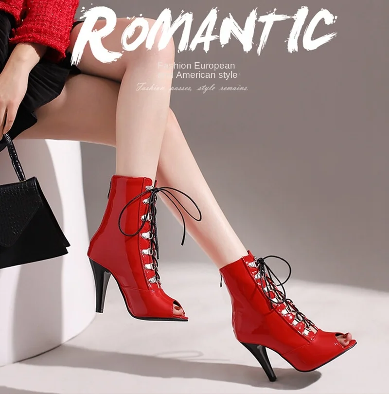 BLXQPYT Zapatos De Mujer 2022 Summer Boots Peep Toe Zipper High Heels Party Designer Black Dress Shoes for Women Sandals A7-3