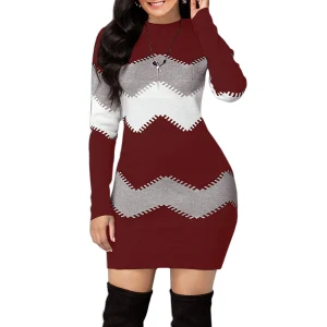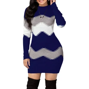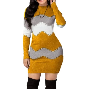 Bodycon Dress Women Long Sleeve Slim Patchwork Dress Sexy Women Knitted Short Dress