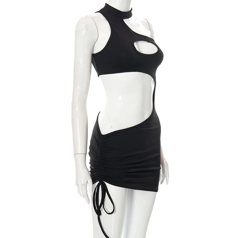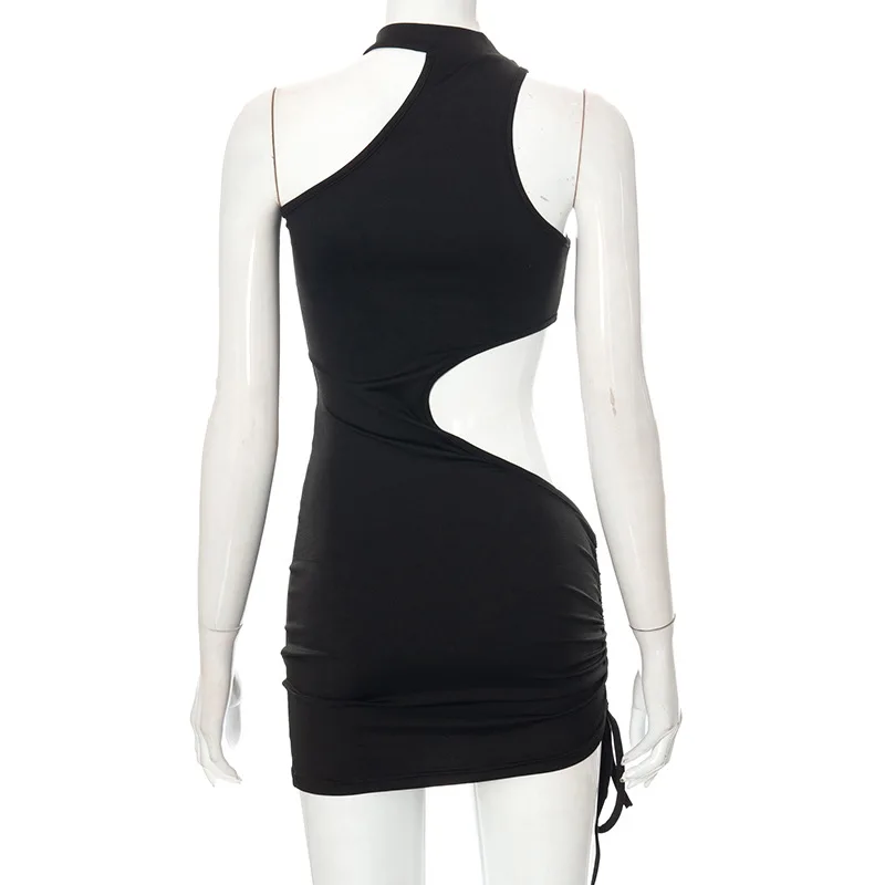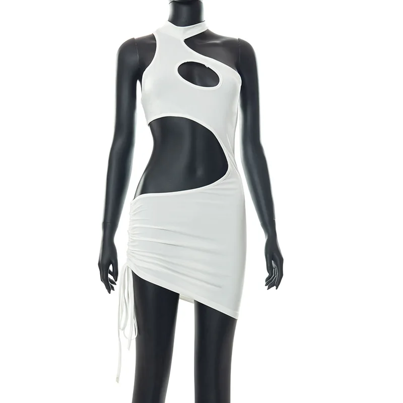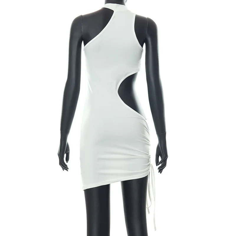 BOOFEENAA Irregular Cut Out Mini Bodycon Dress Summer Going Out Club Wear Sexy Outfits for Woman White Black Dresses C85-BI17
