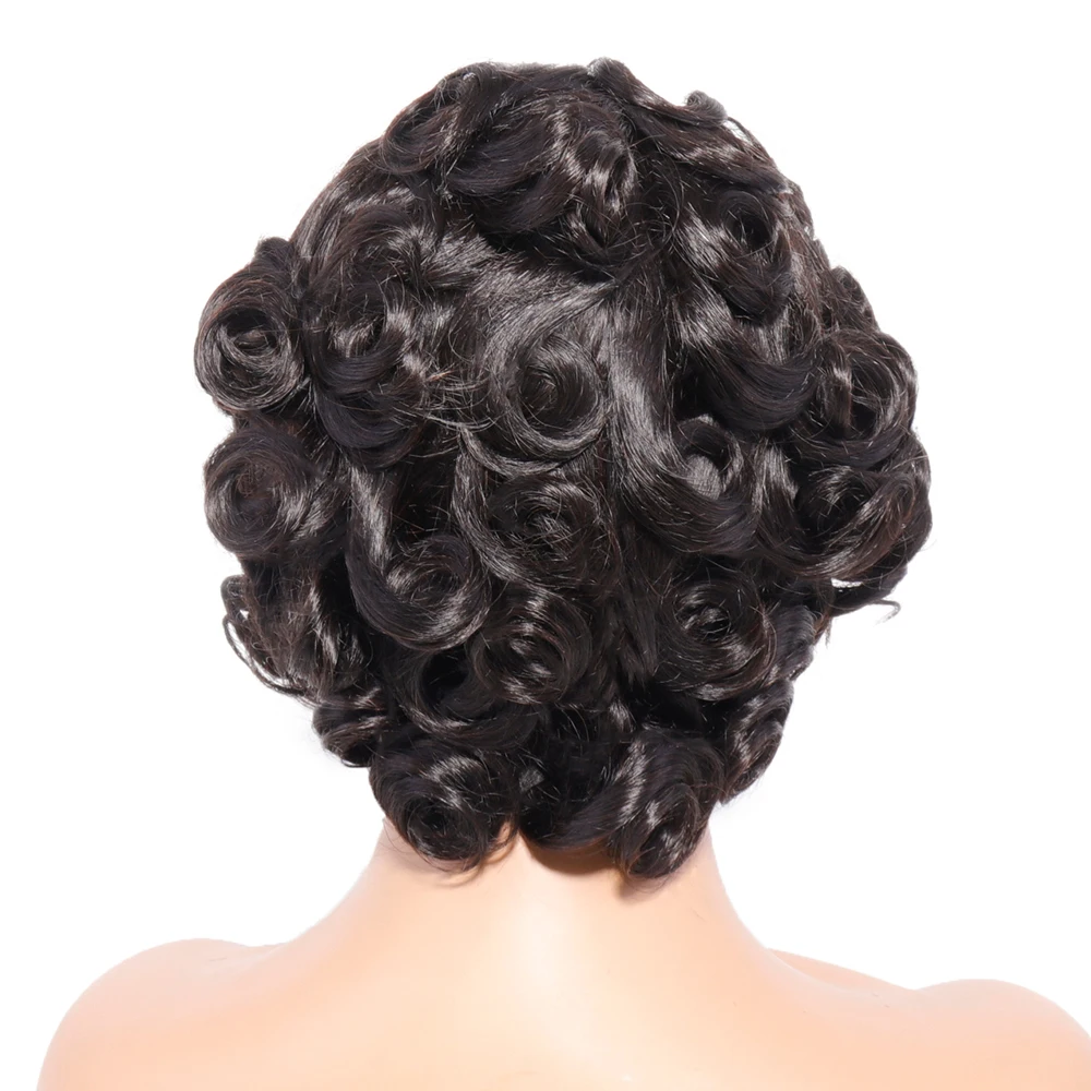 Bouncy Curly Fringe Wig Pixie Cut Wig Short Curly Human Hair Wigs For Women Cheap Full Machine Wigs Egg Curls Bob Wig With Bangs