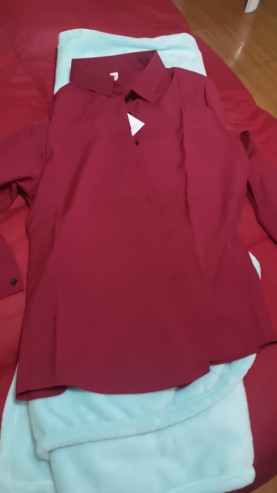 the shirt is not see through, good quality. no weird or strong smell. the botton holes are well sewn. the sewing is well done. don't know if the blouse bleeds yet cuz I haven't washed it. I ordered S, fits perfectly. color is saturated, very nice. so far I'm very satisfied with this purchase