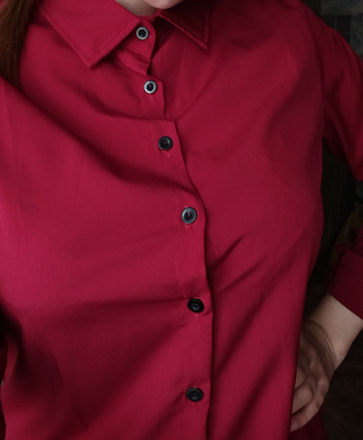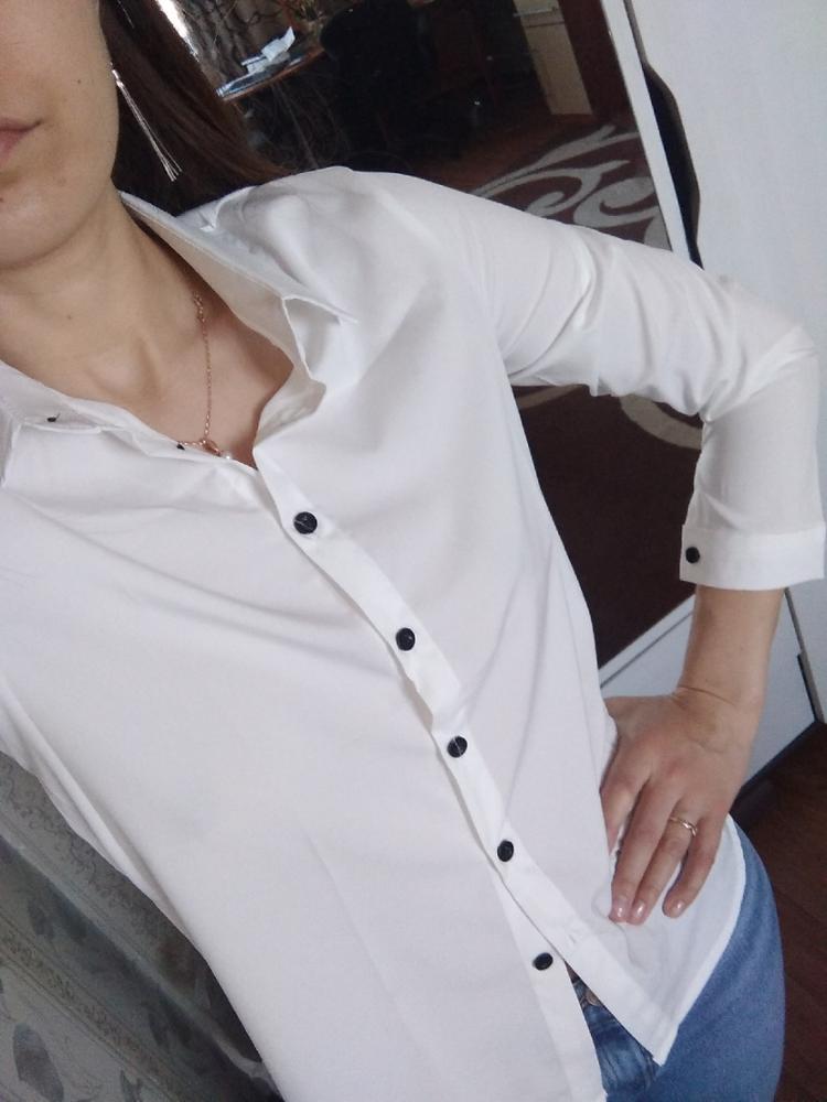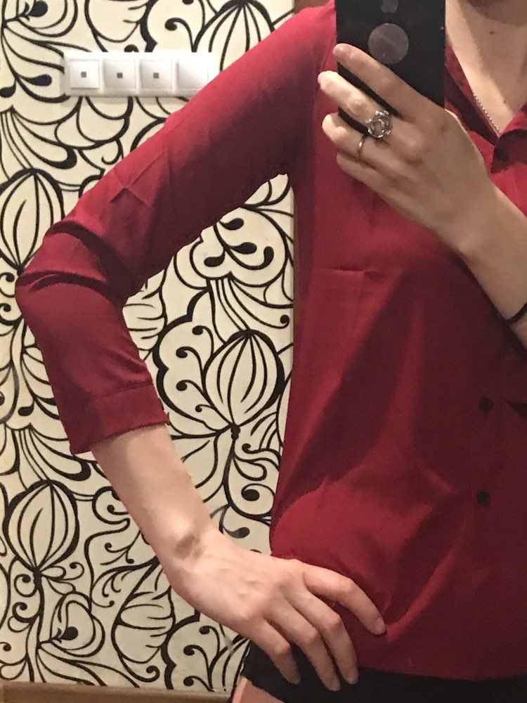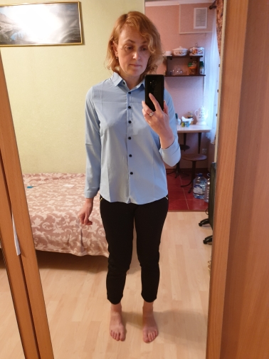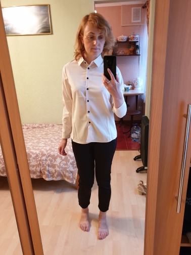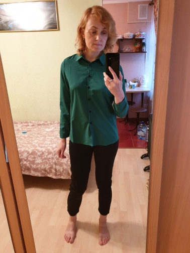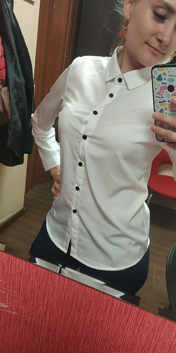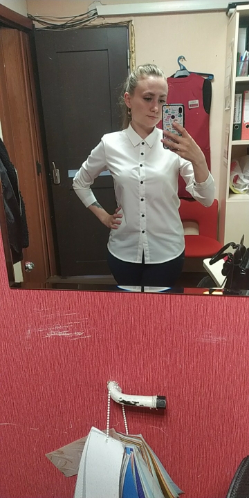 The blouse is very good. Sewing quality, seams and stitches even without flaws. The fabric is of course synthetic, but it is pleasant to the body, it stretches a little. I did not guess with the size-I needed to take L-usually wear M (og 90, from 72), so a little pulls in the chest and the cuzo sat in the shoulders, although on the back and at the waist did not tighten. Very narrow sleeves and the very length is short. I think high and who has full hands or big breasts-this model is not an option. And in general, the store did well, sent and sent very quickly. I put 5 +