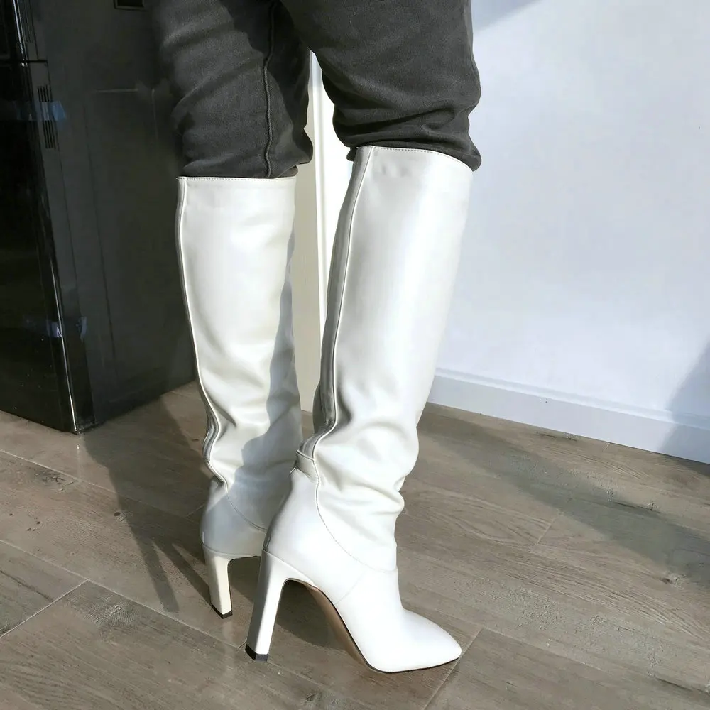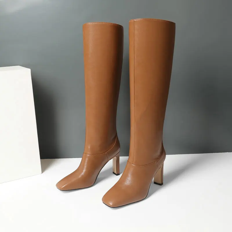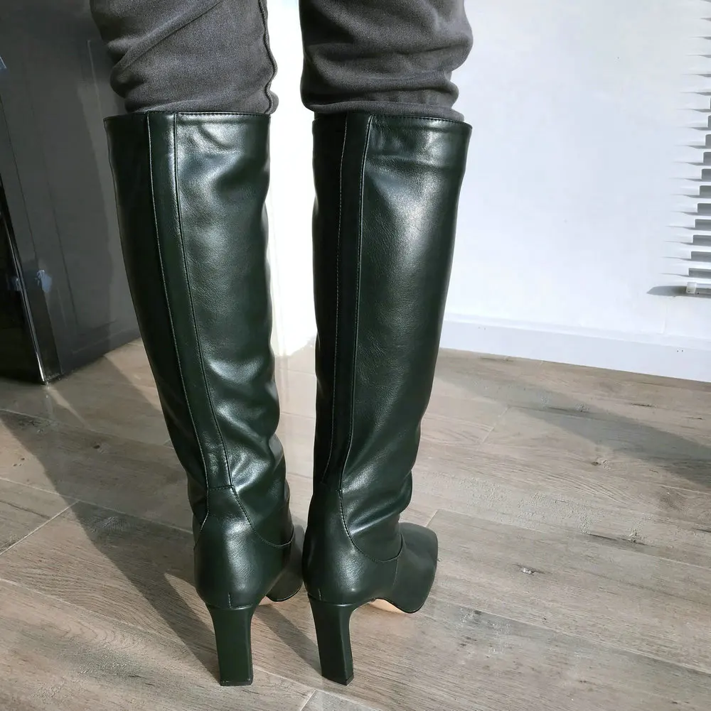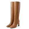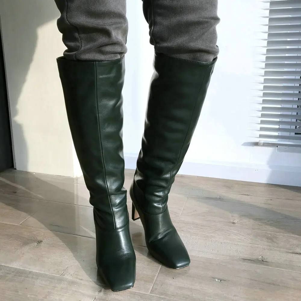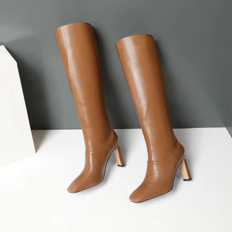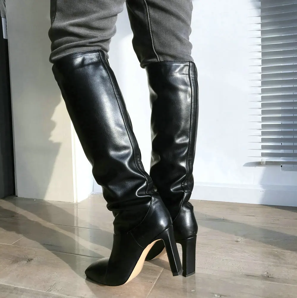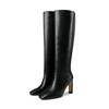 Brown Black Wine Red Lvory Knee High Boots Heels for Women 2021 Ladies Party Shoes Woman Square Toe Tall Boots Plus Size