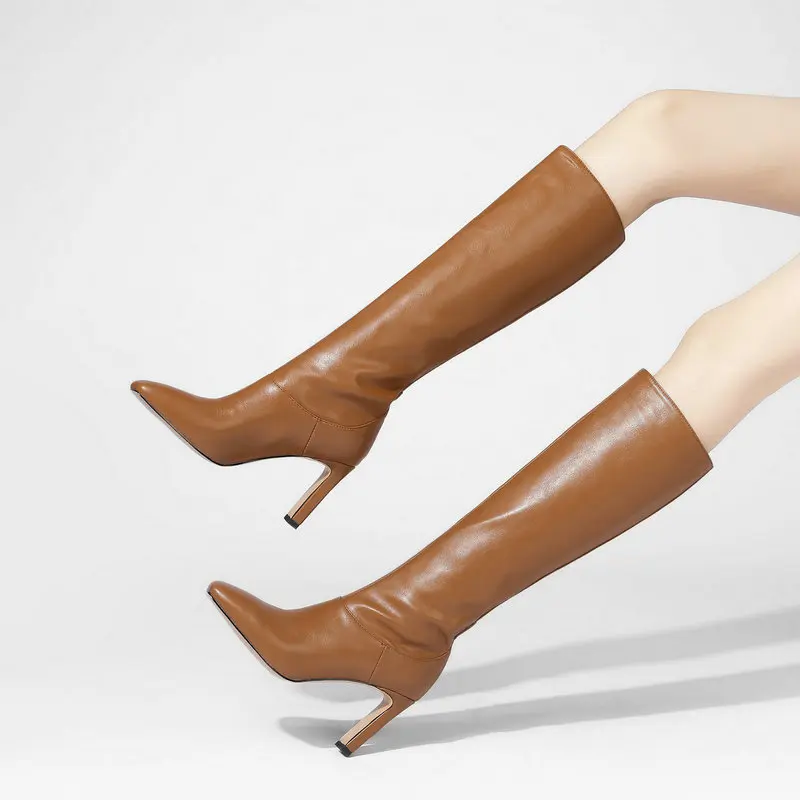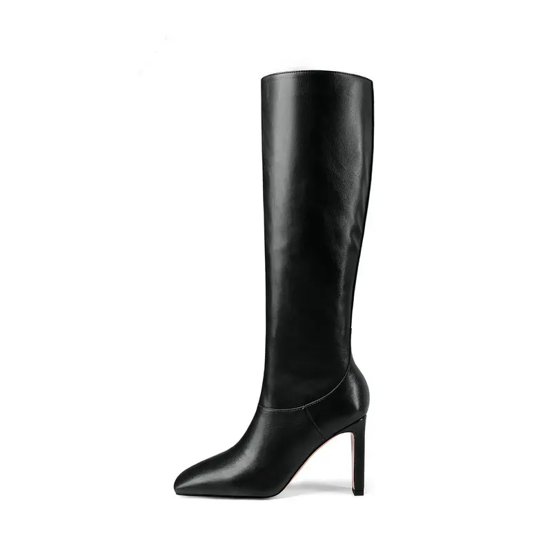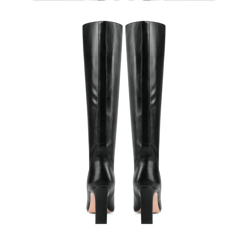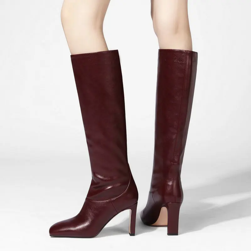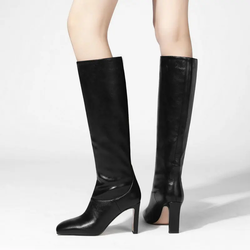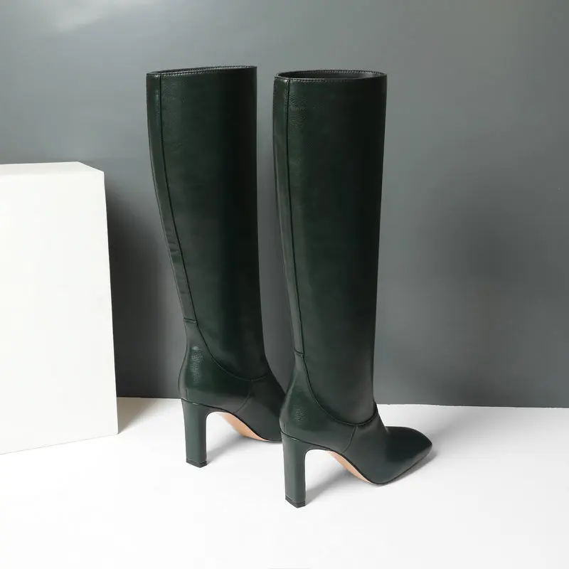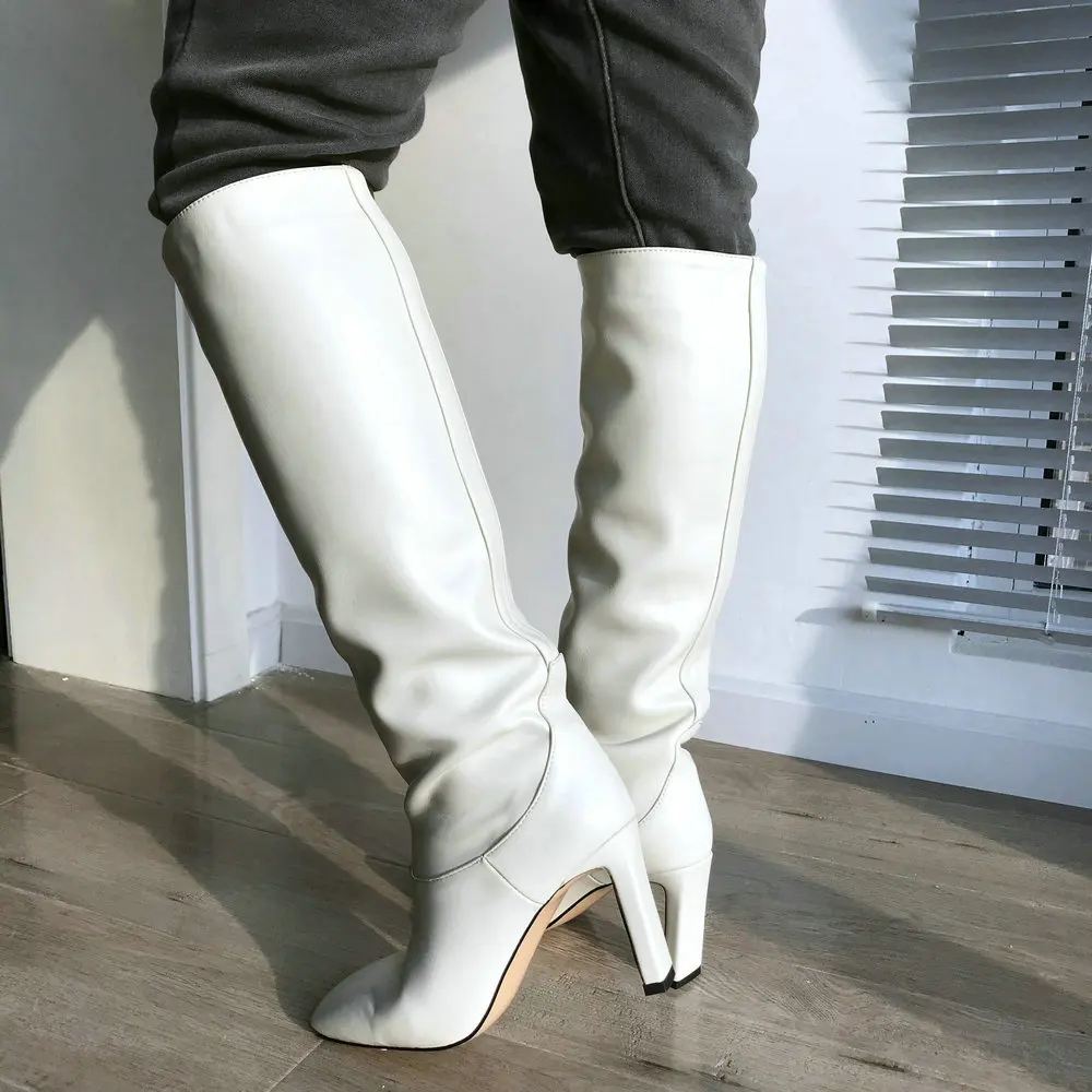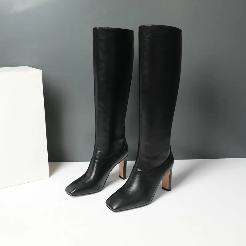 Brown Black Wine Red Lvory Knee High Boots Heels for Women 2021 Ladies Party Shoes Woman Square Toe Tall Boots Plus Size