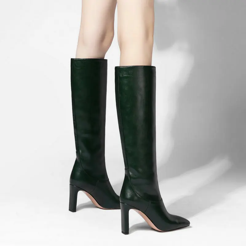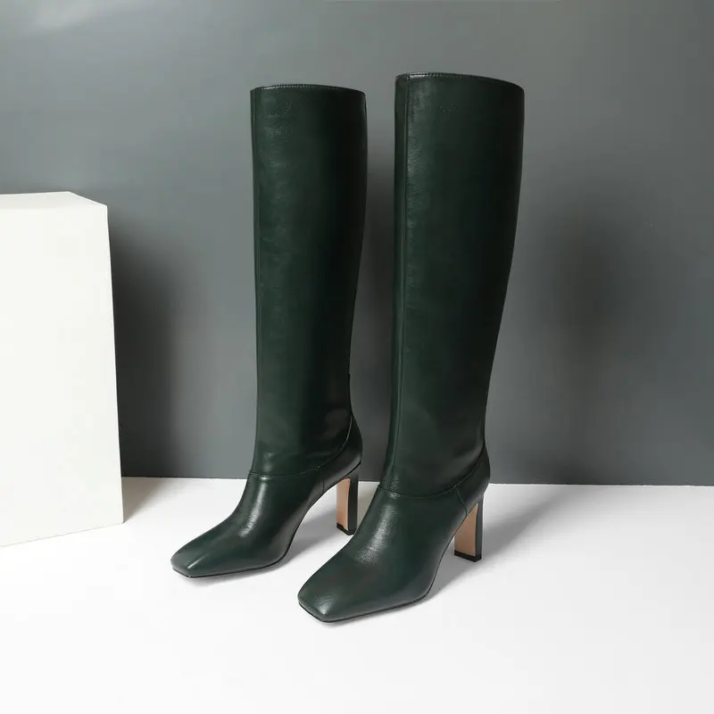Black Wine Red Beige Orange Yellow Green Knee High Boots
