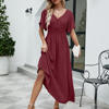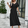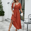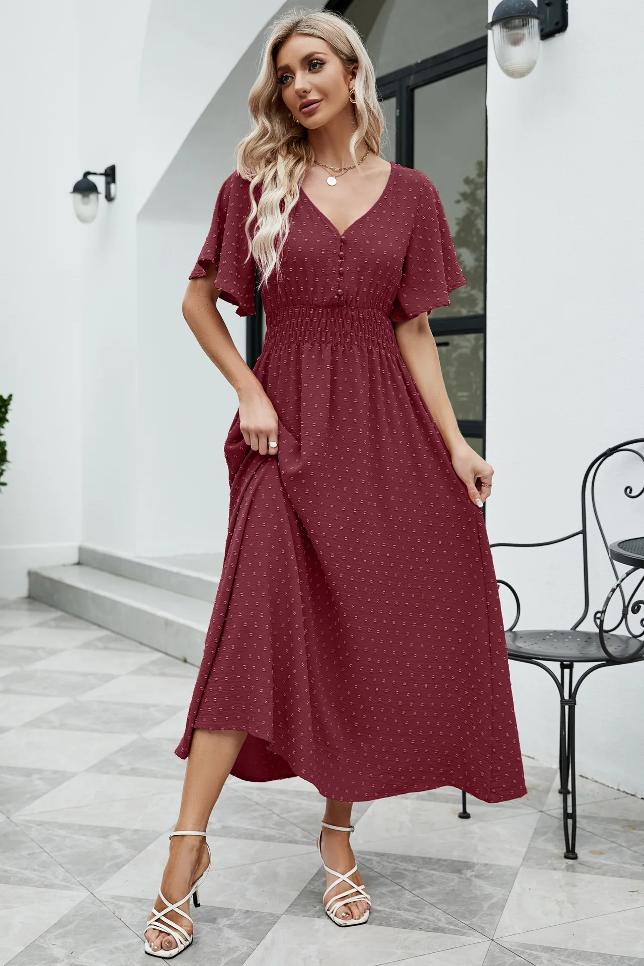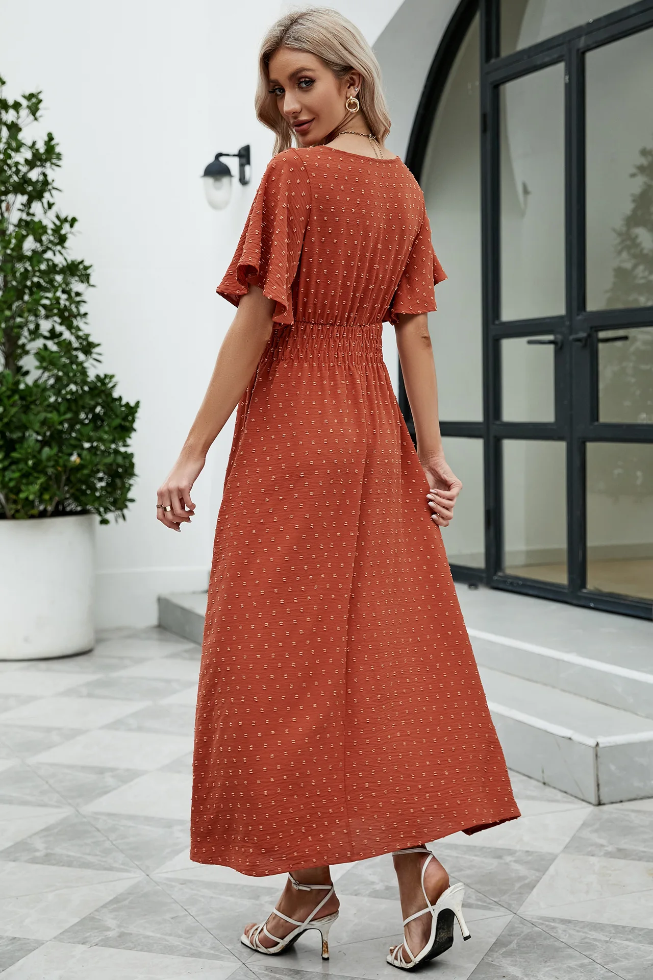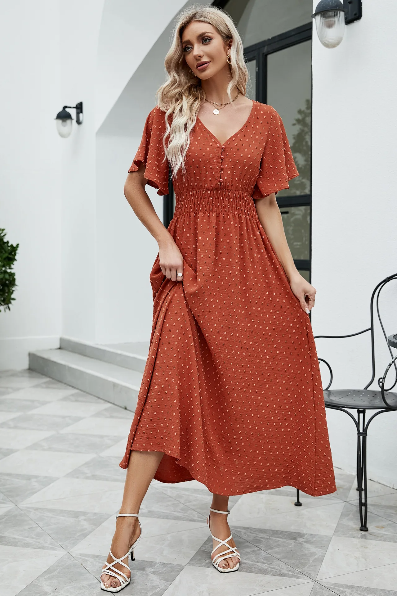 Casual Dot Sweet Elastic Waist Short Sleeve V-Neck Long Dress Women Spring/Autumn New Breasted Design Sexy Holiday Dress