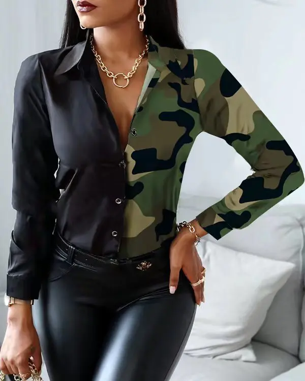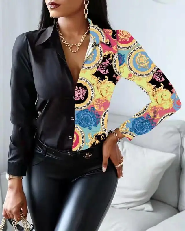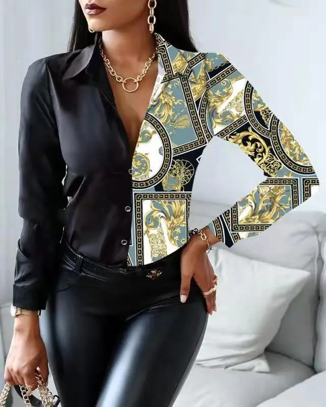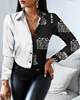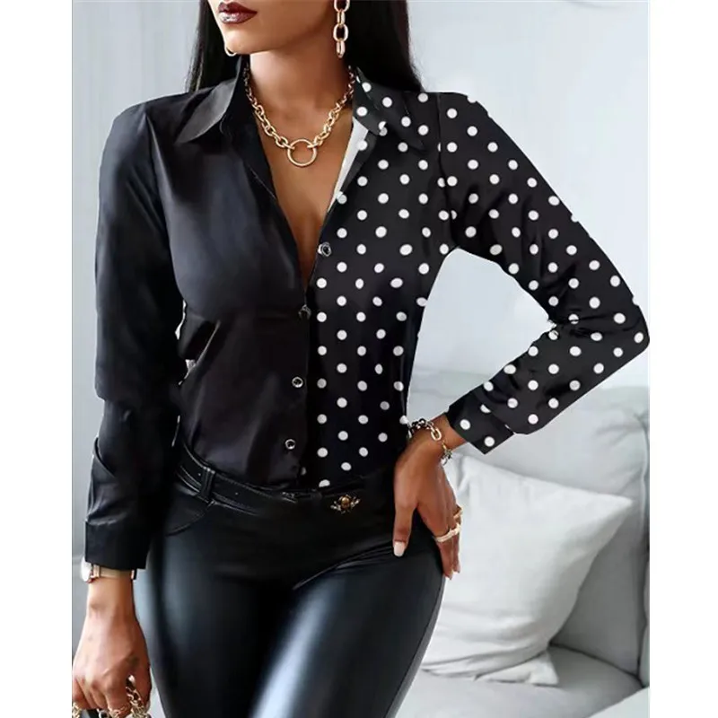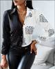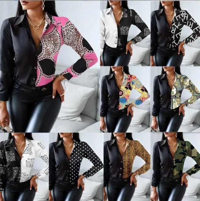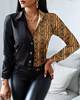 Casual Office Lady Leopard Print Shirt Slim Striped Lapel Long Sleeve Blouse Fashion Tops Vintage Clothes Camisas Femme Blusas