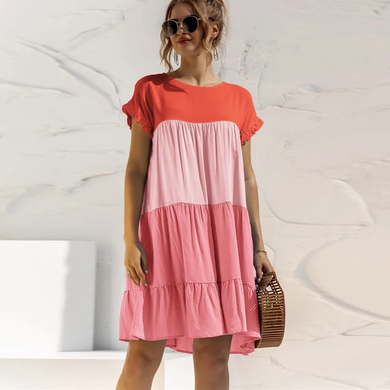 Casual Short Sleeve Big Ruffles Cupcake Dress Female Beach Dresses Summer Women OverSize Loose Dress 2021 New Arrival Ladies
