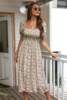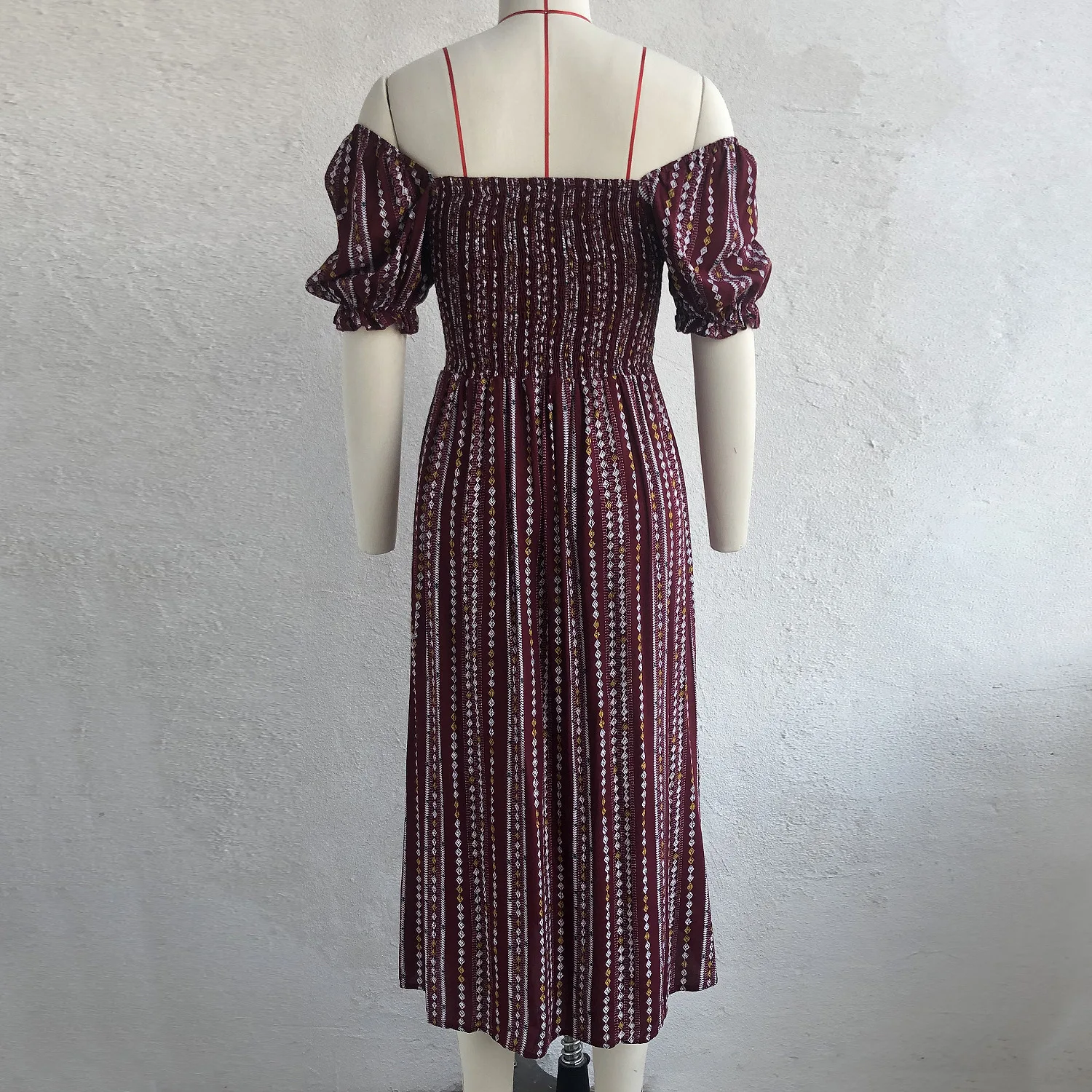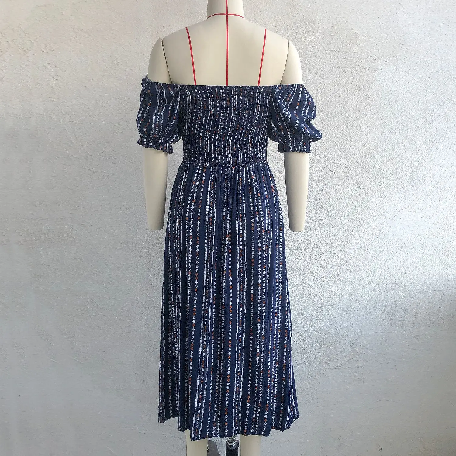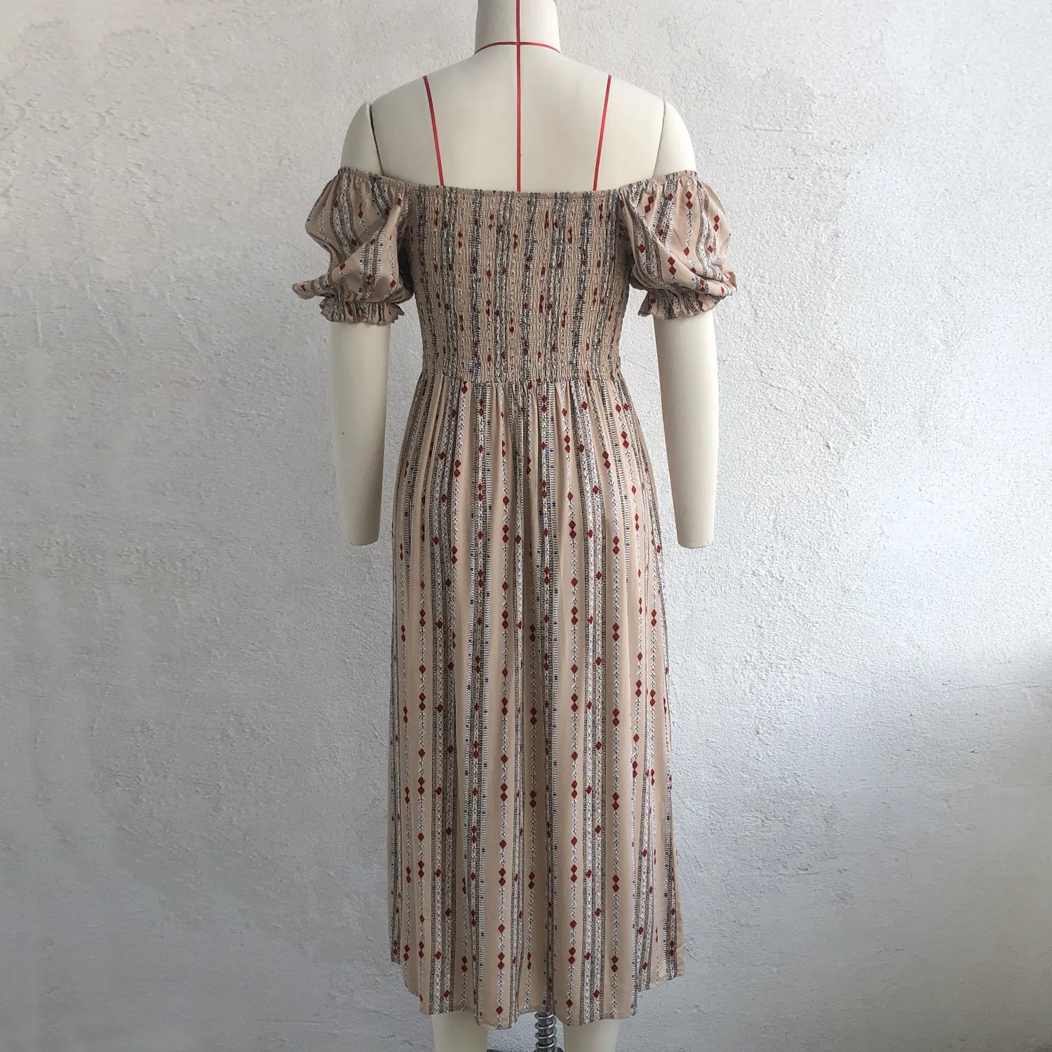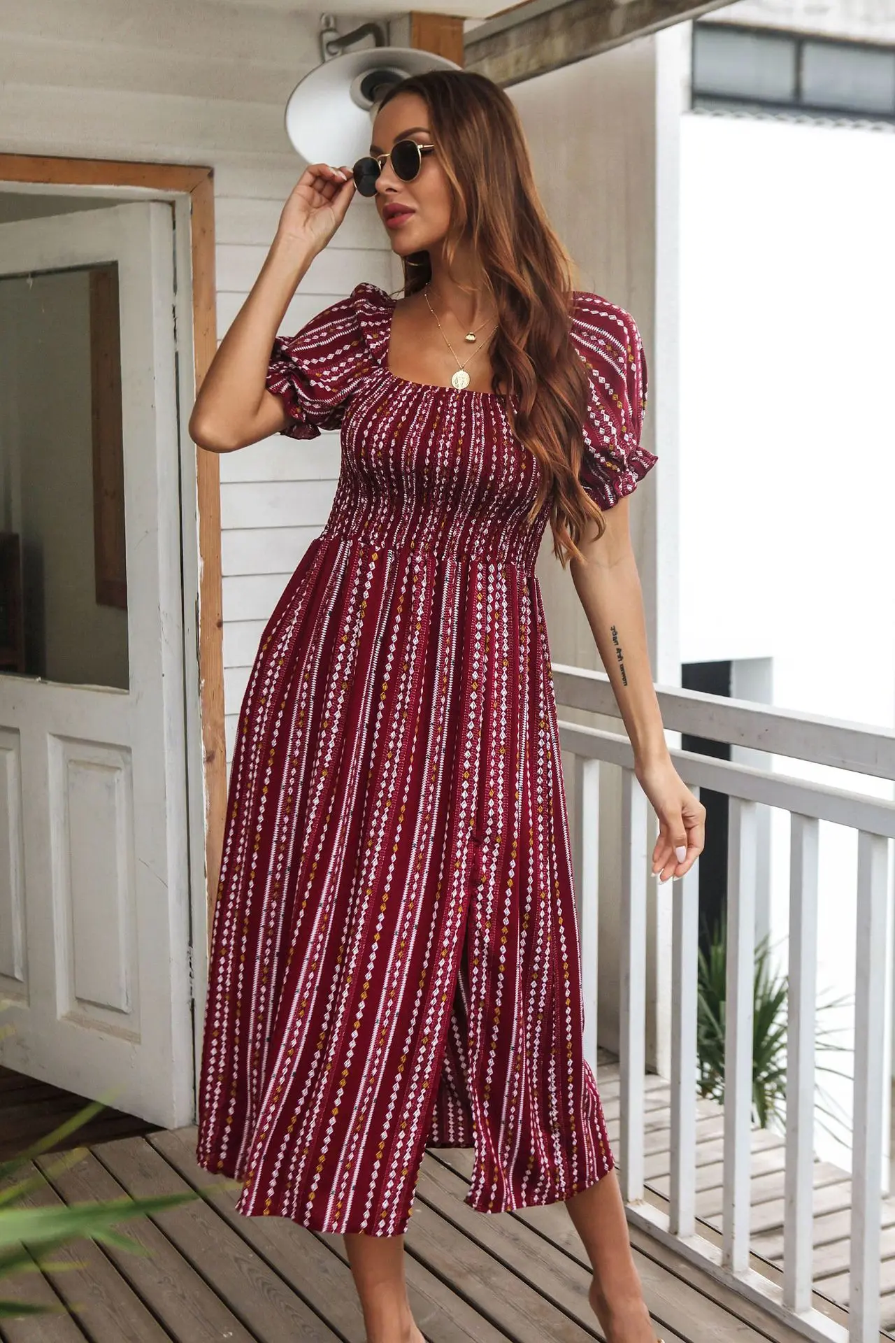 Casual Short Sleeve Midi Dress Women Summer 2022 Fashion Square Collar Cotton Slim Print Dresses Elegant Robe Femme Vintage