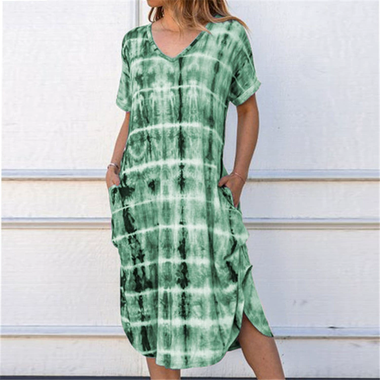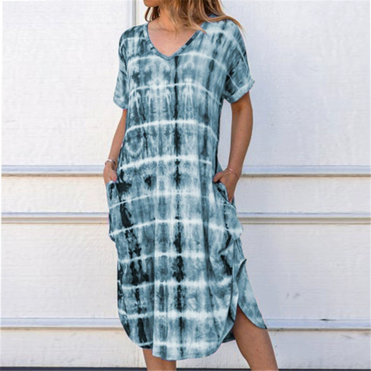 Casual Summer Robe Ladies Dress Striped Print Fashion Short Sleeve Vestidos Women High Waist Long Dressплатье женское летнее2022