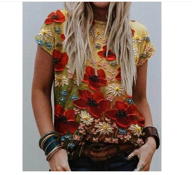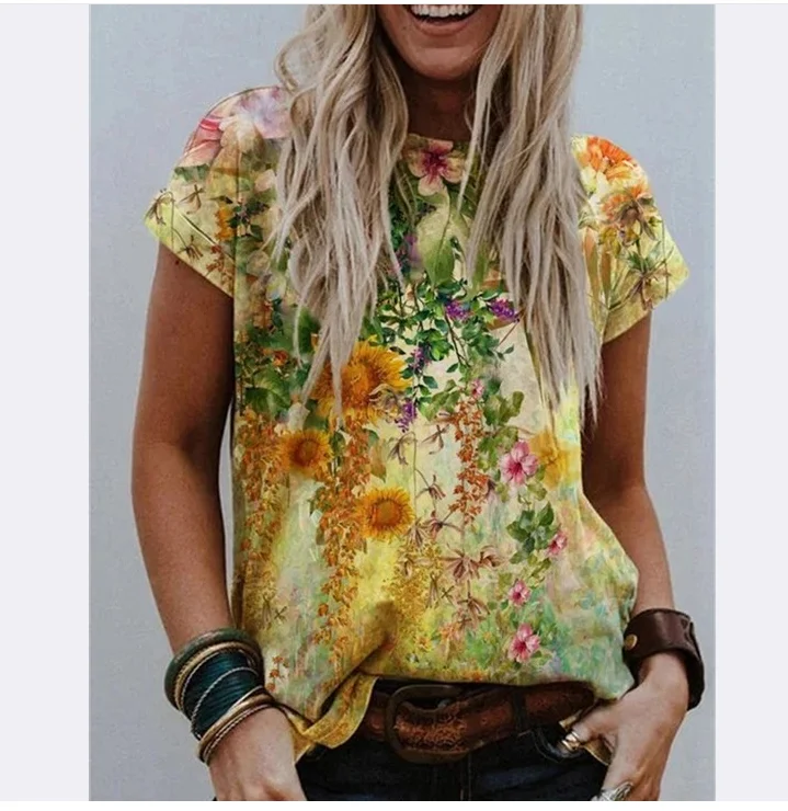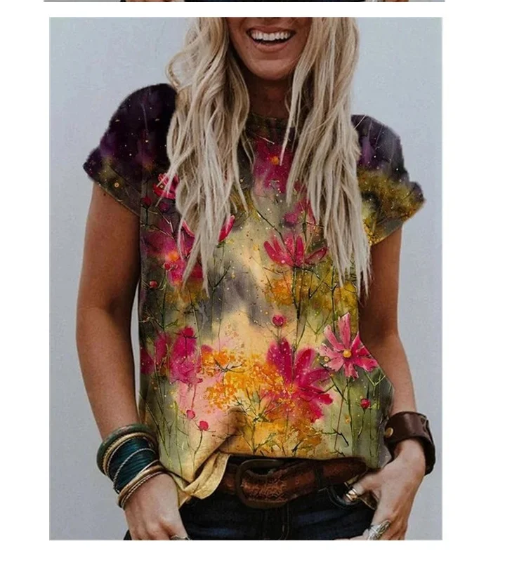 Casual Summer Tee Woman Blouse Shirt Harajuku Plus Size Women Short Sleeve Printed O-Neck Tops Tee Shirt Women 2021