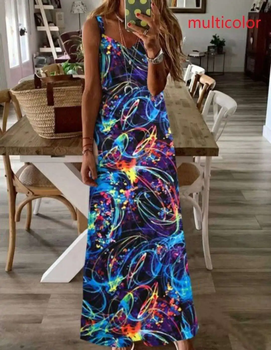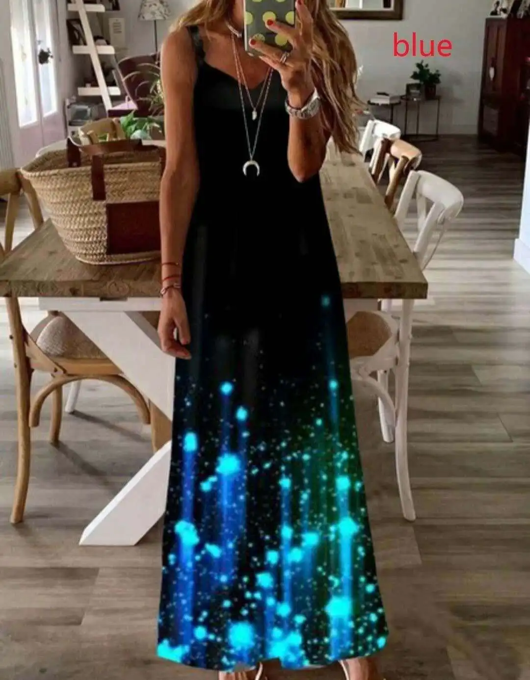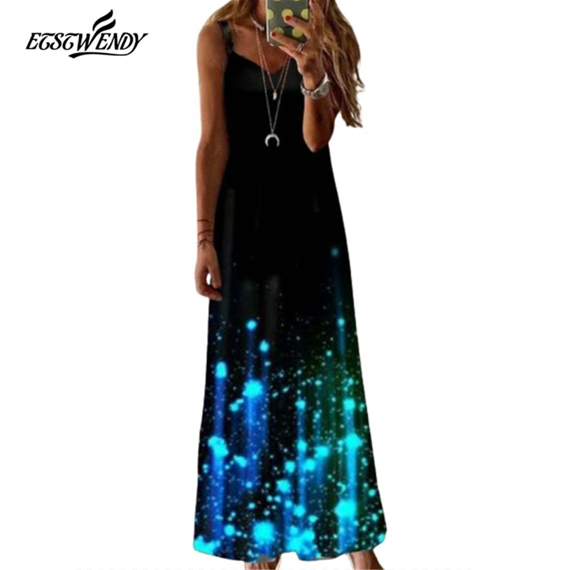Casual Summer Women Maxi Dress Sleeveless V-neck Printed Long Dress Long Dress Backless ETSTWENDY Sexy Women Clothes Vestidos