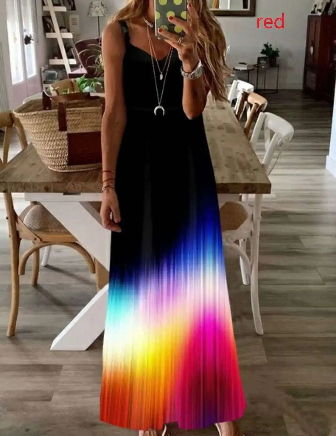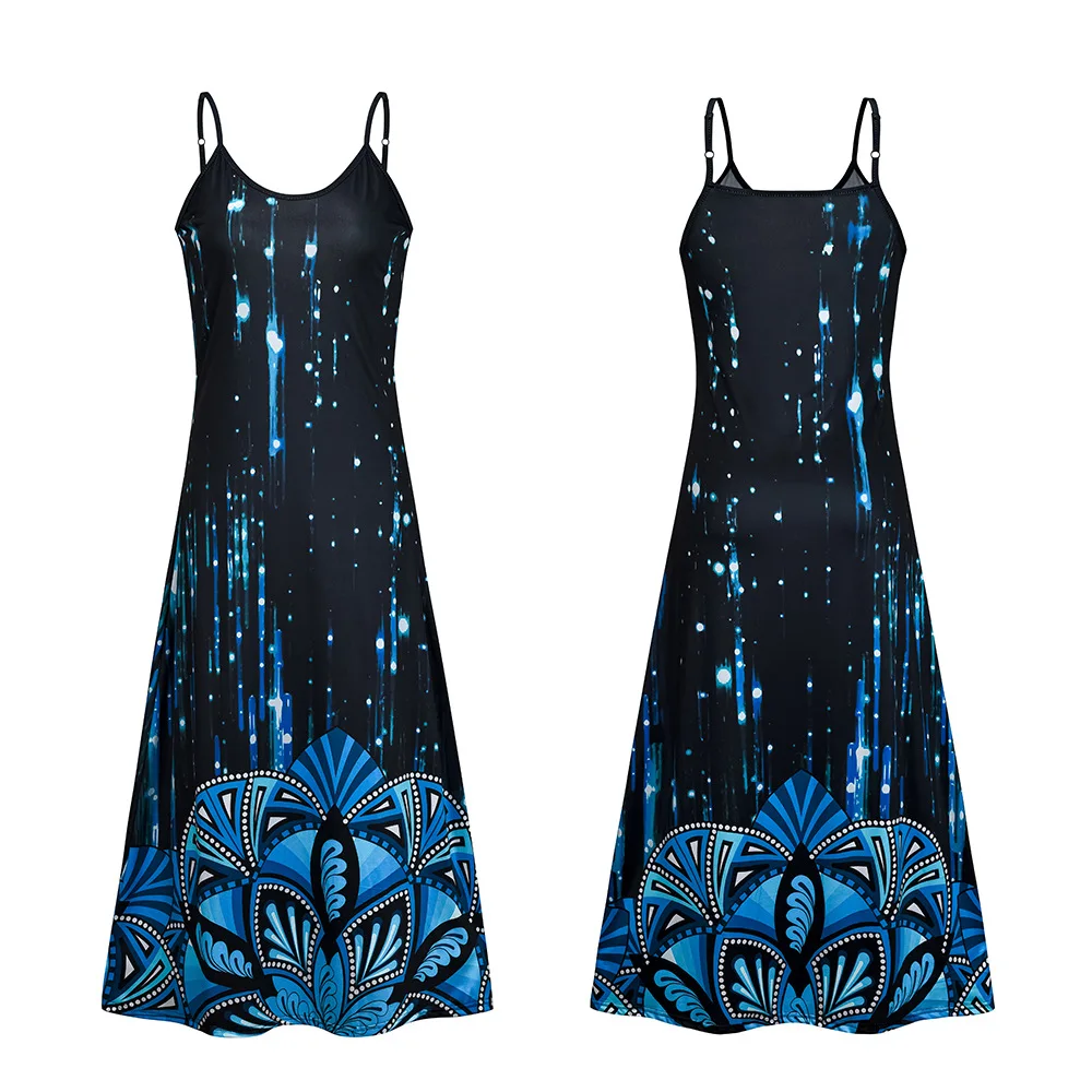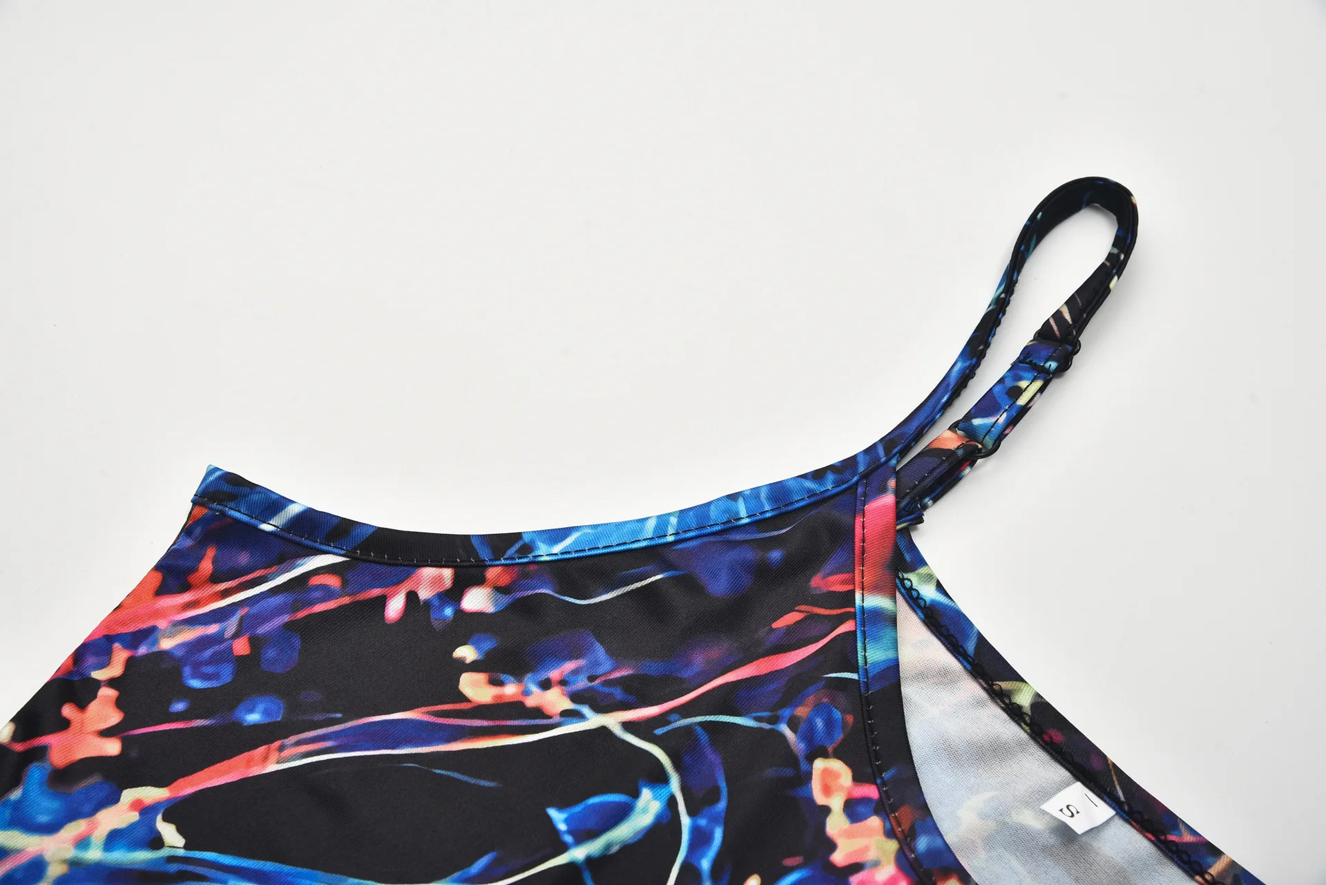 Casual Summer Women Maxi Dress Sleeveless V-neck Printed Long Dress Long Dress Backless ETSTWENDY Sexy Women Clothes Vestidos