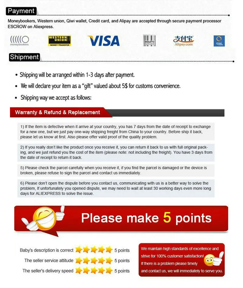 • If you did not receive the product within the guaranteed time( 45 days not including 2-5 day processing) you can request a refund or a reshipment.