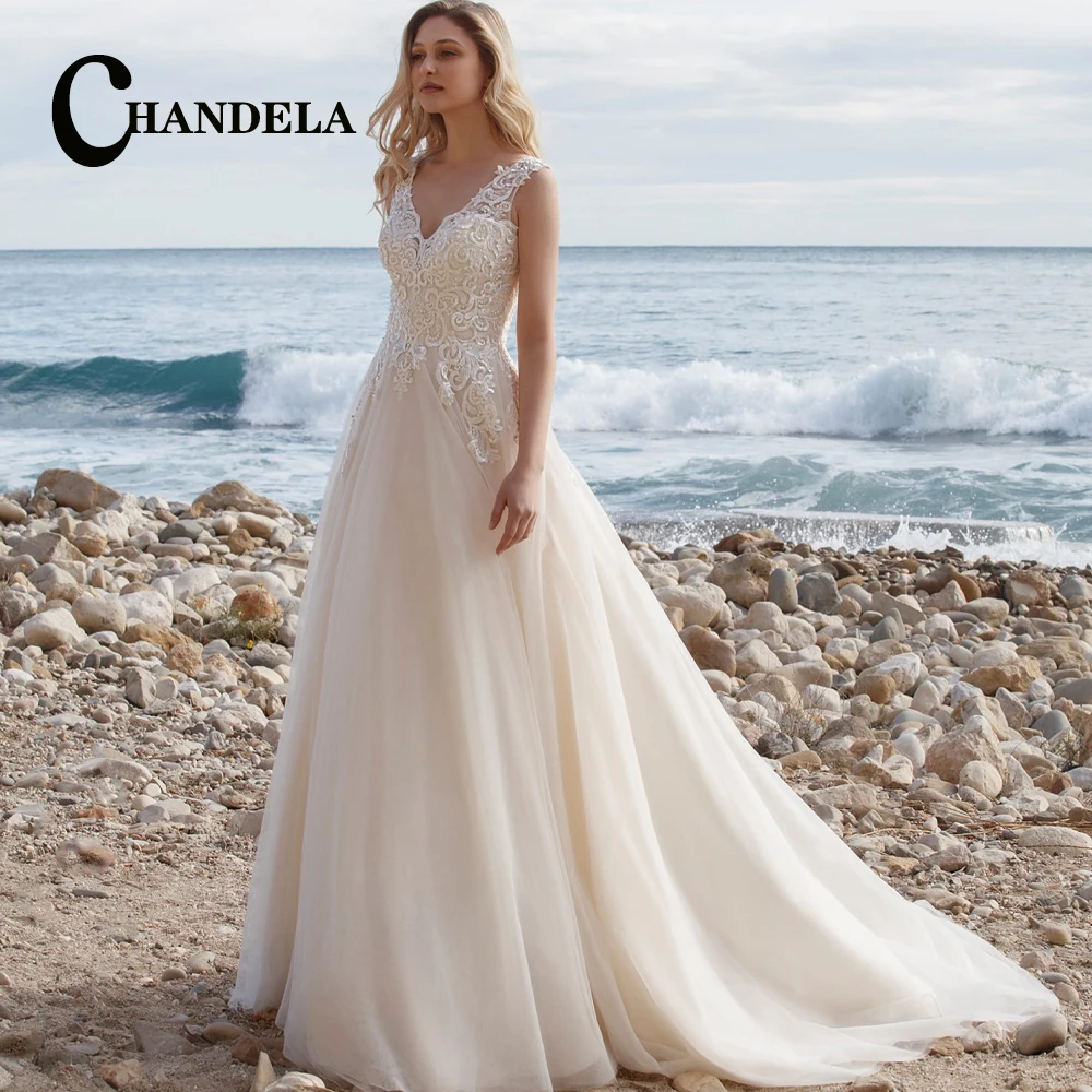 CHANDELA Elegant Wedding Dresses Tank Appliques Pl…