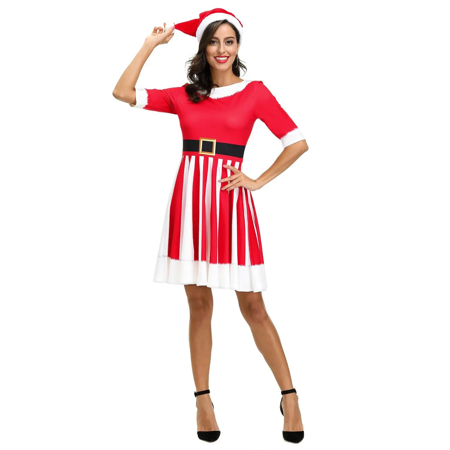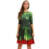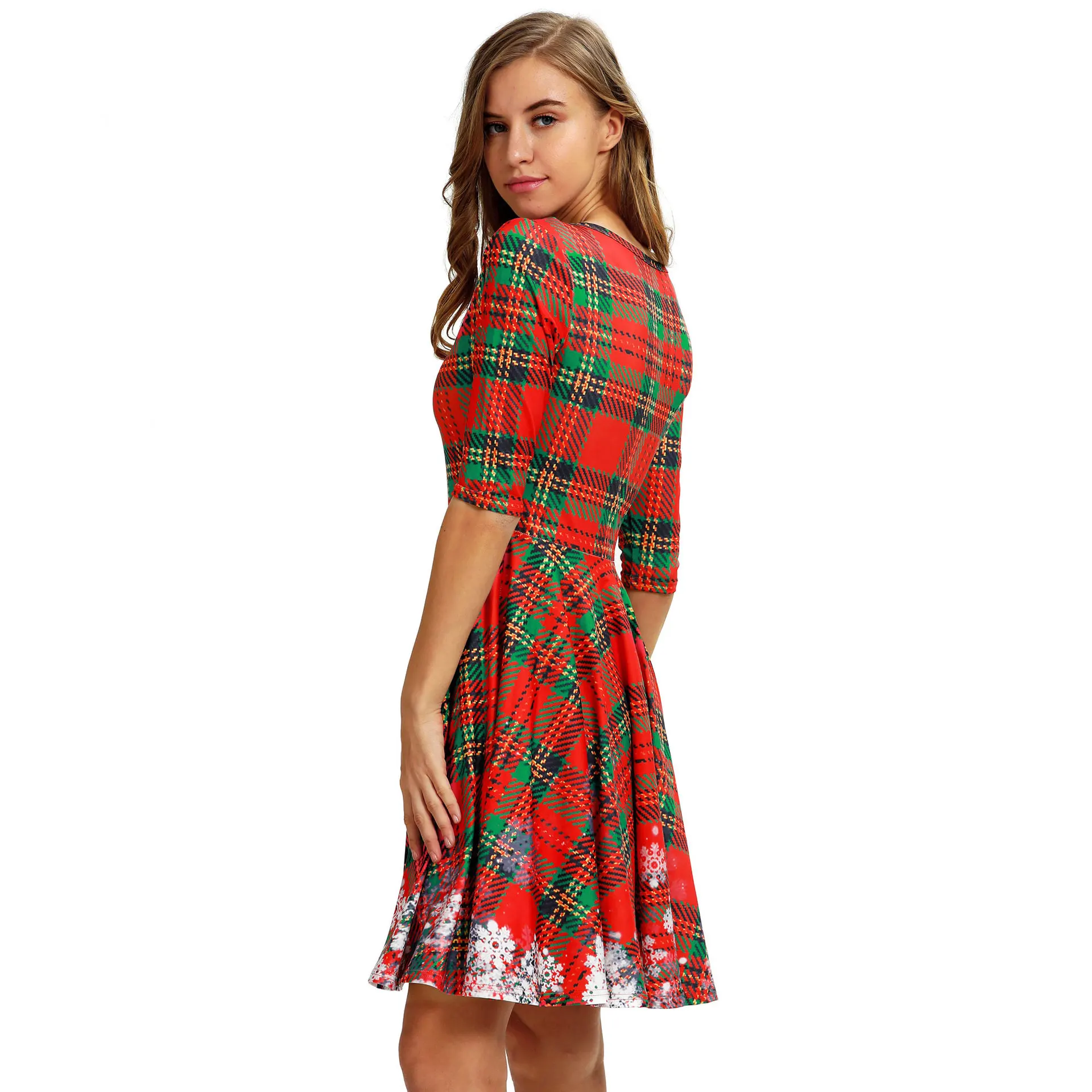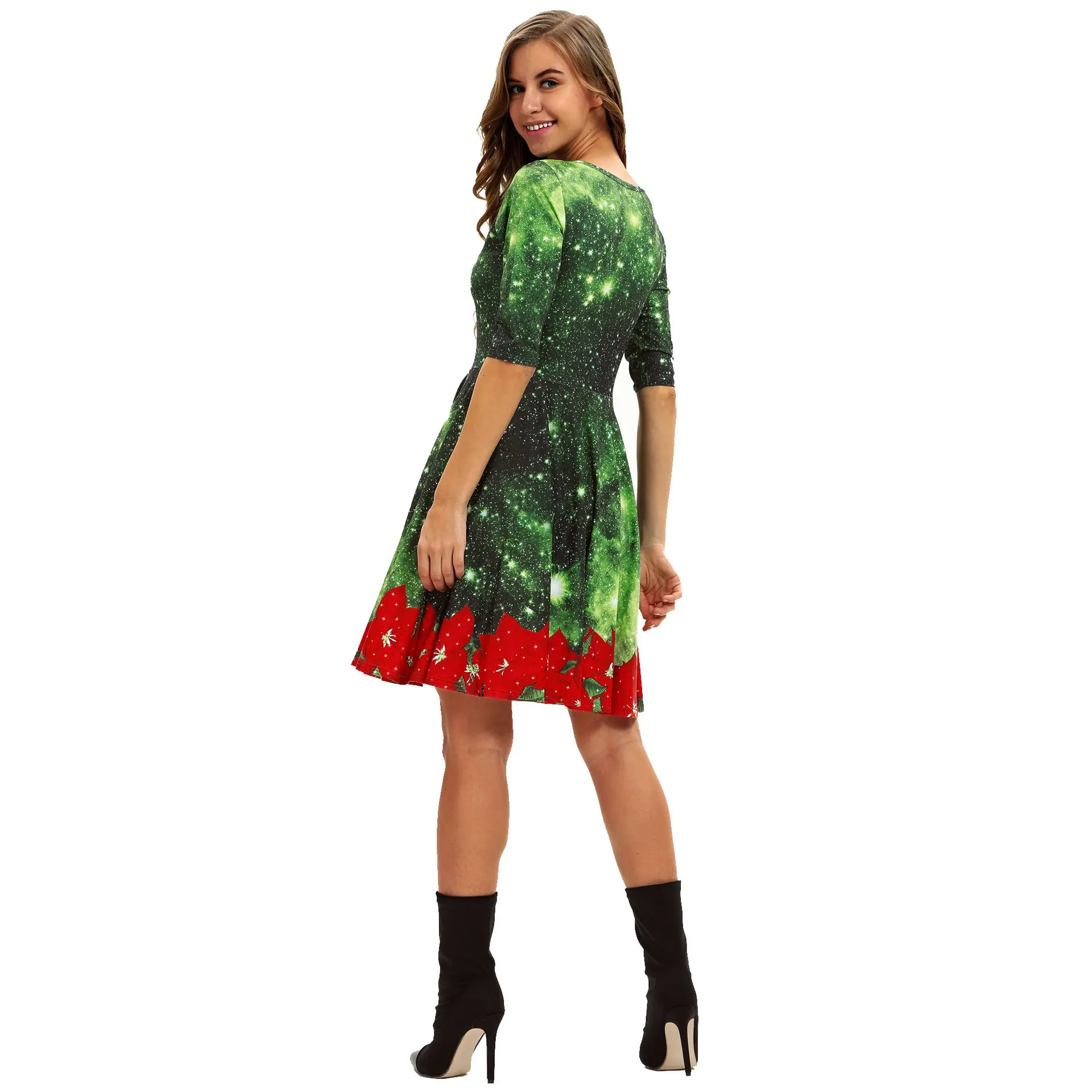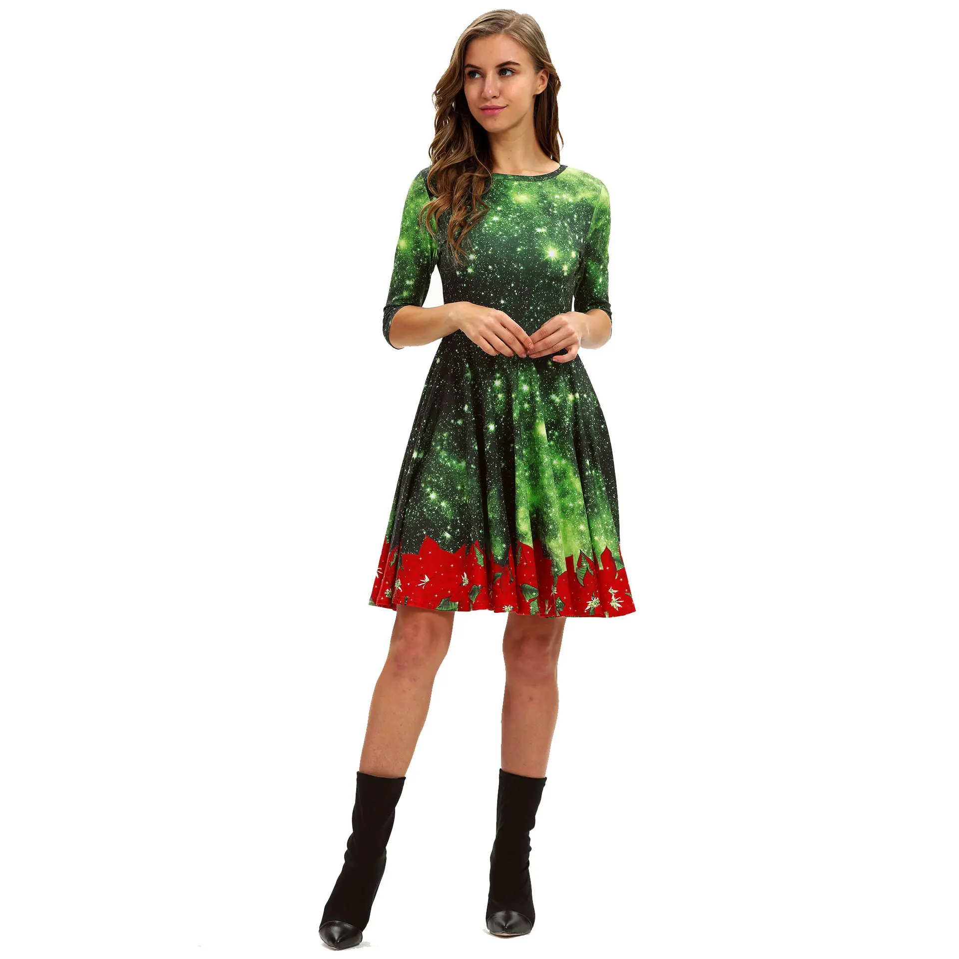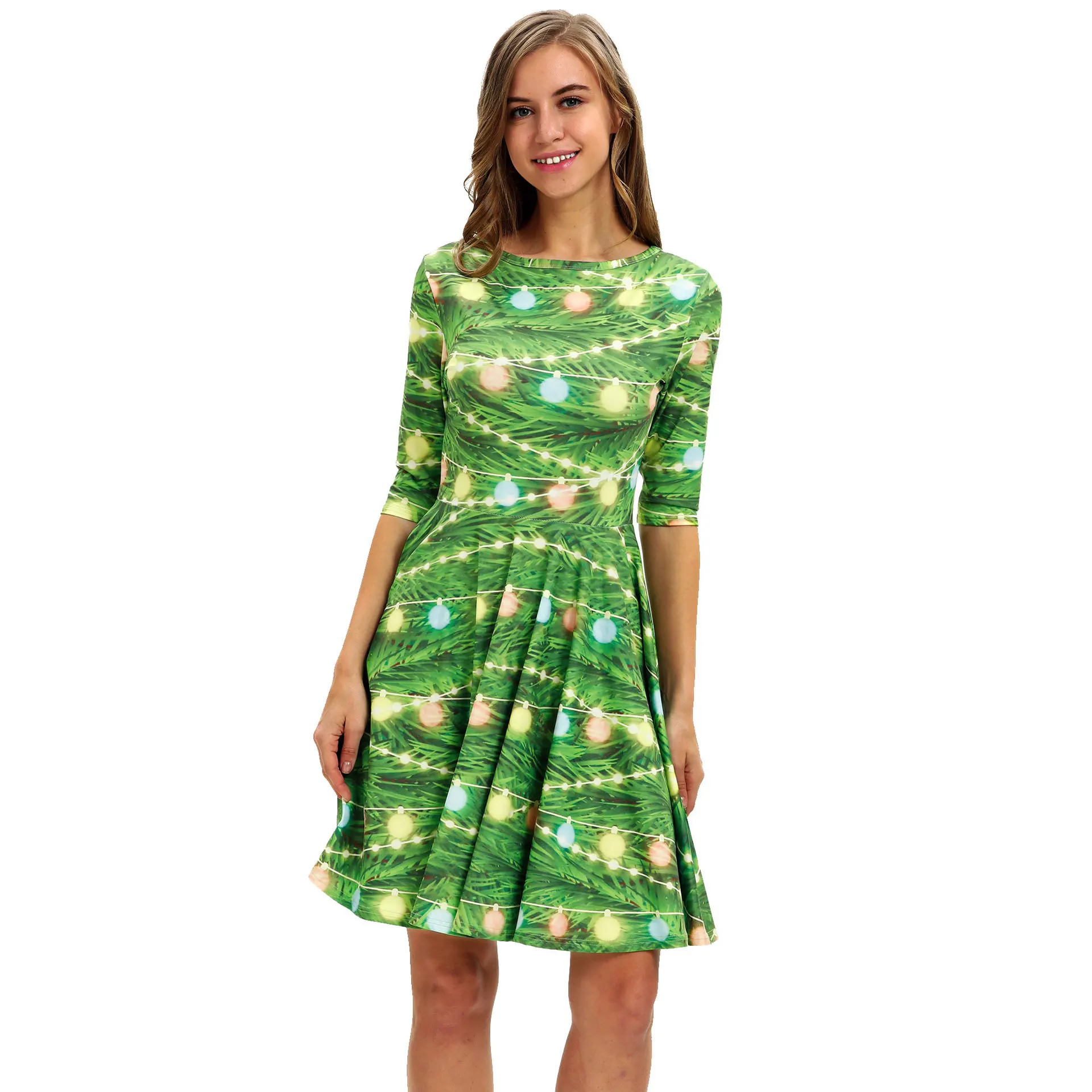 Christmas Clothes Dress Women O Neck Print Party Dress Slim Mid-Sleeve Dress Female Hot Sale Winter Christmas Dresses