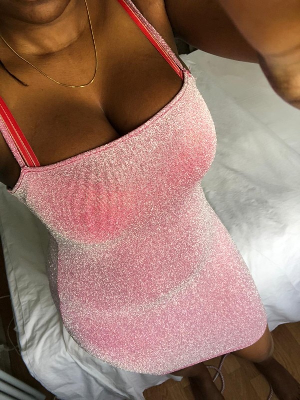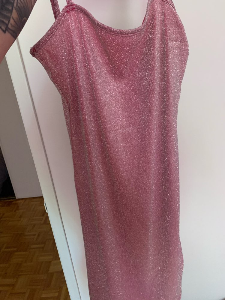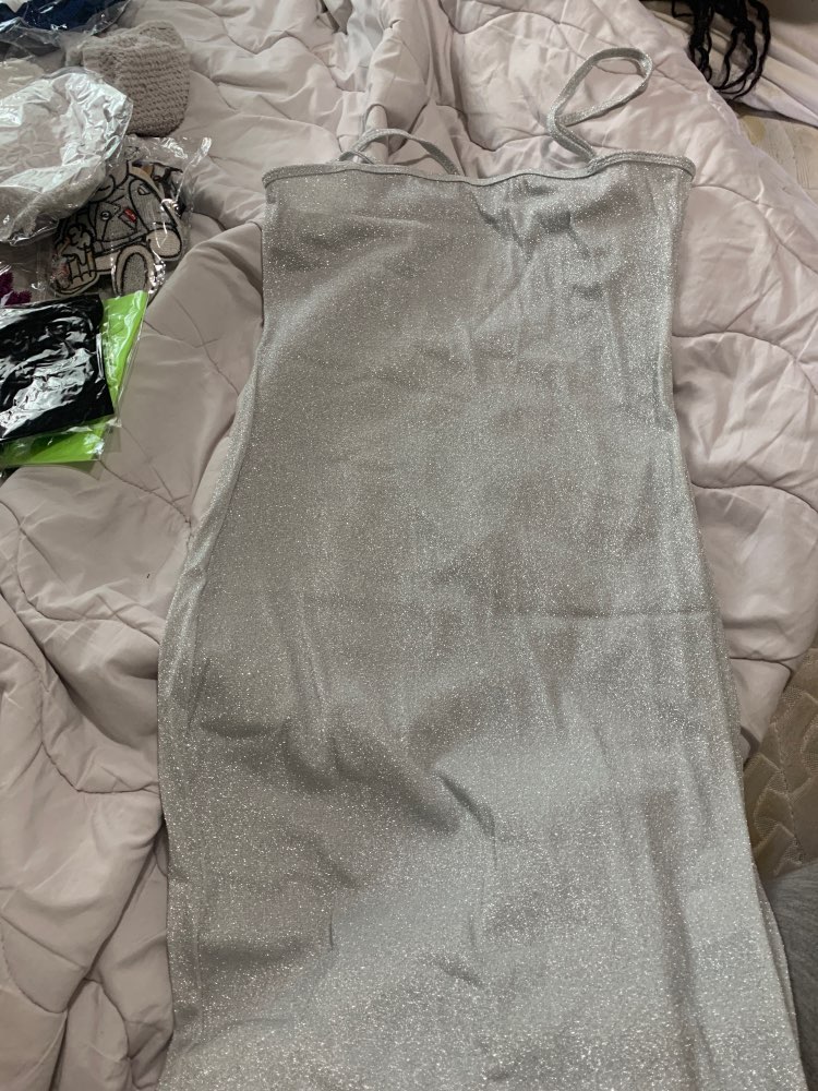 I absolutely love this dress I cannot wait to wear it. The material is comfortable the outside is like a glittery feel.. It fits so well I’m trying to wait until I gain a few more pounds to make it really pop. I’ll upload pictures at a later time.