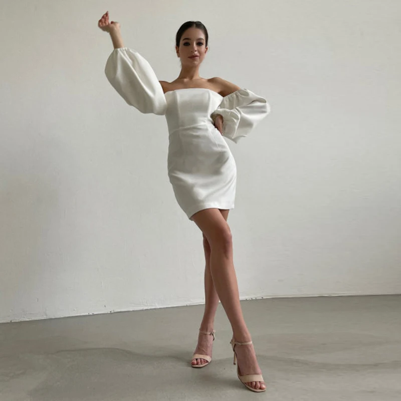 Churses Sexy Off The Shoulder Bodycon White Dress Autumn Puff Sleeve High Waist Mini Night Club Party Desses For Women 2021