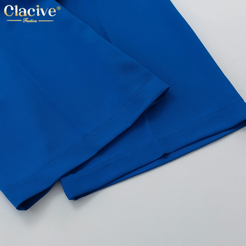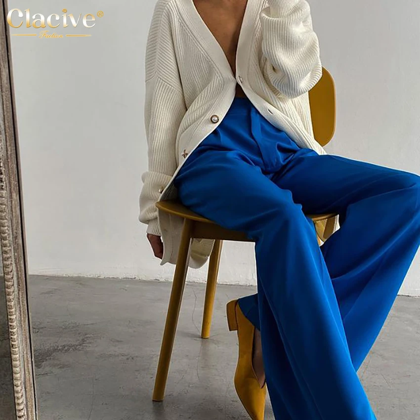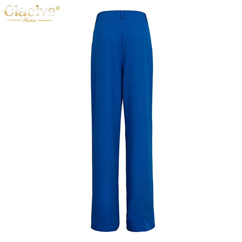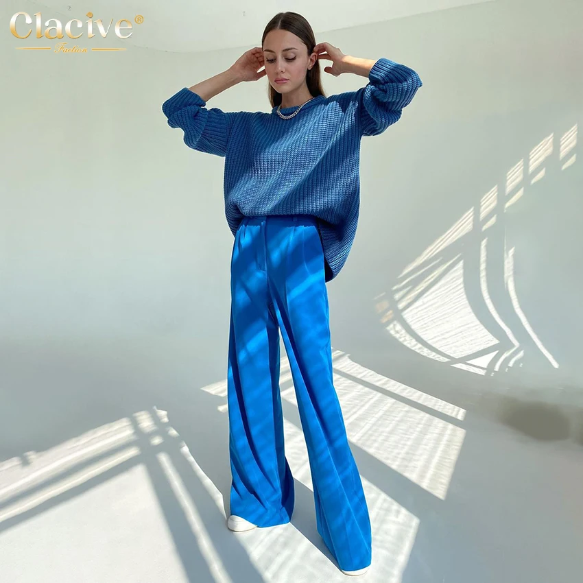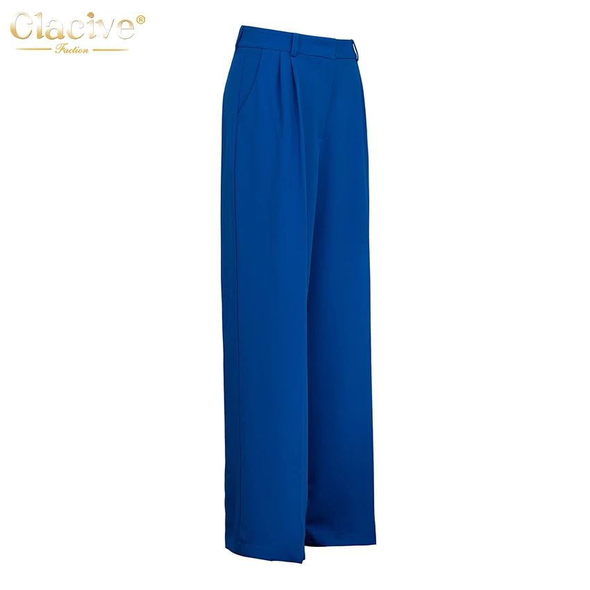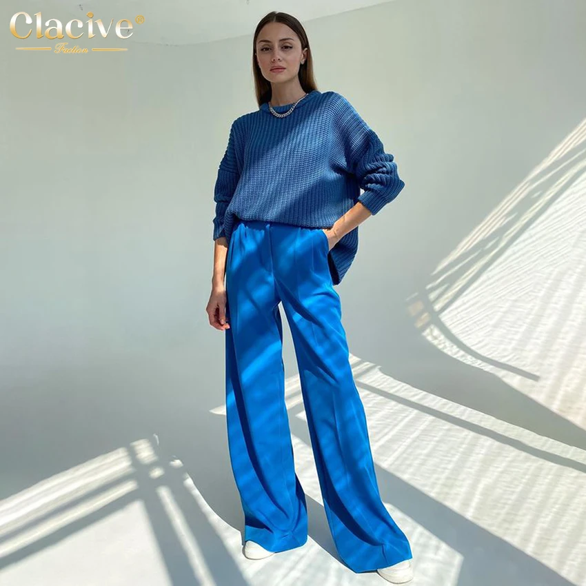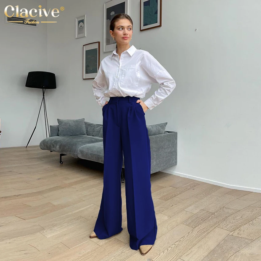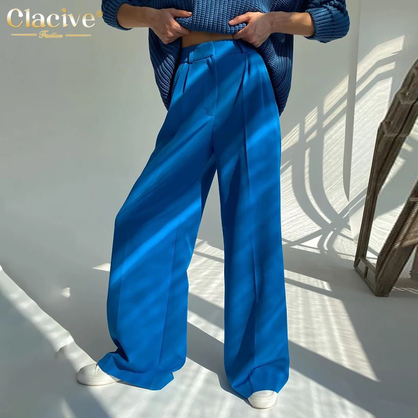 Clacive Blue Office Women’S Pants 2021 Fashion Loose Full Length Ladies Trousers Casual High Waist Wide Pants For Women