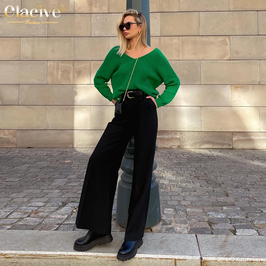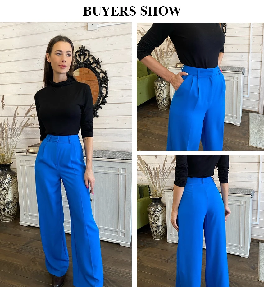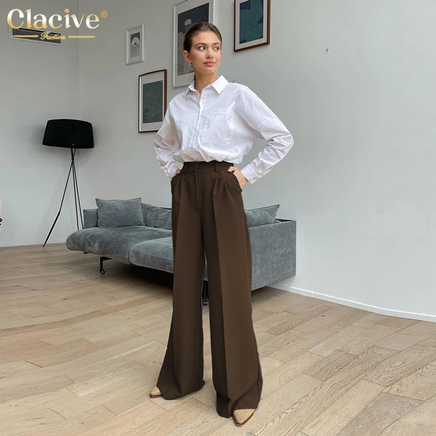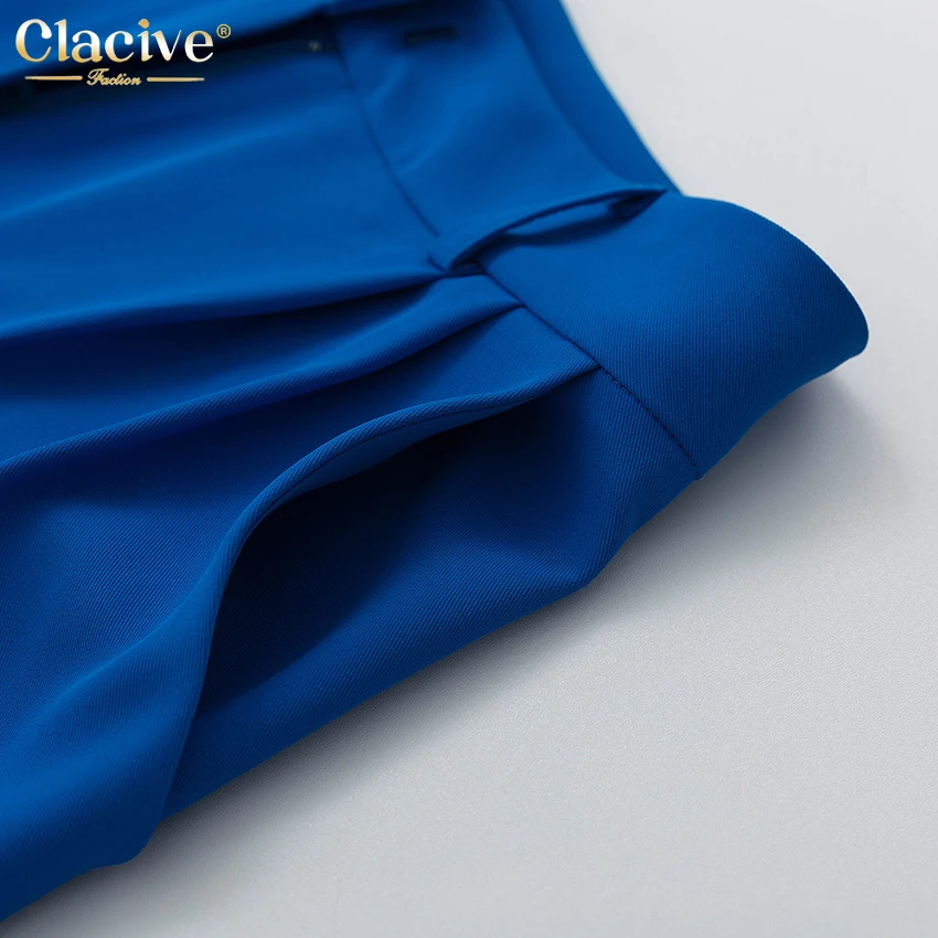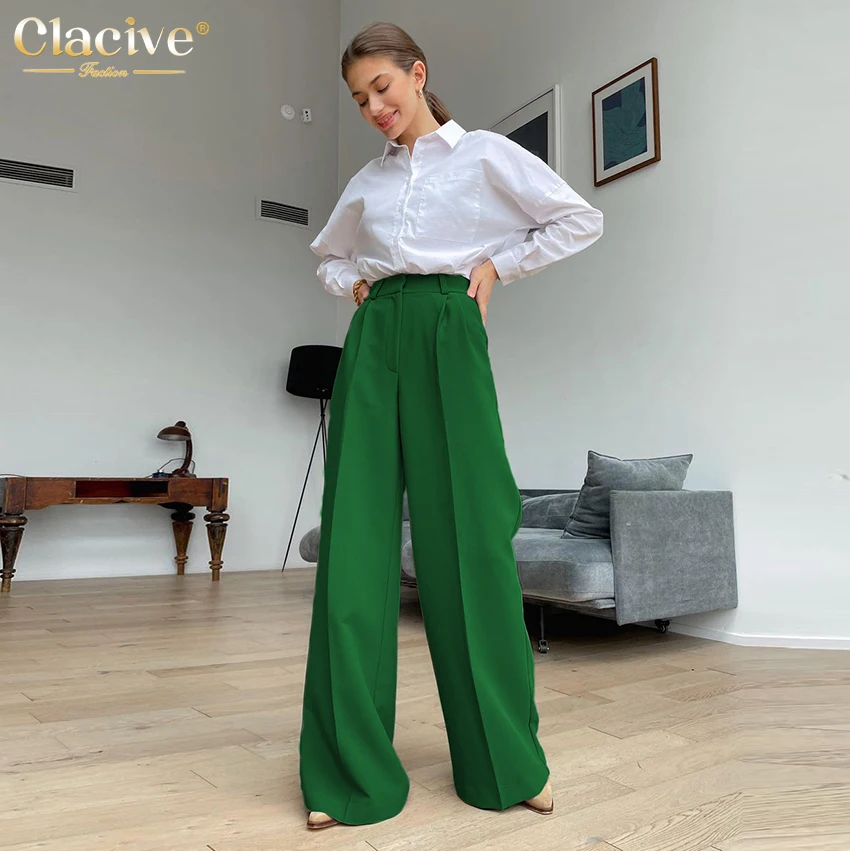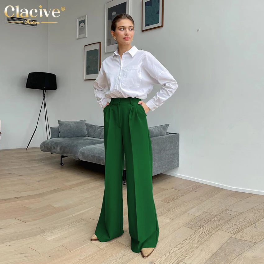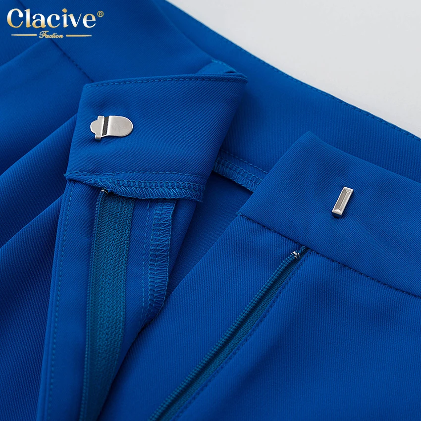 Clacive Blue Office Women’S Pants 2021 Fashion Loose Full Length Ladies Trousers Casual High Waist Wide Pants For Women