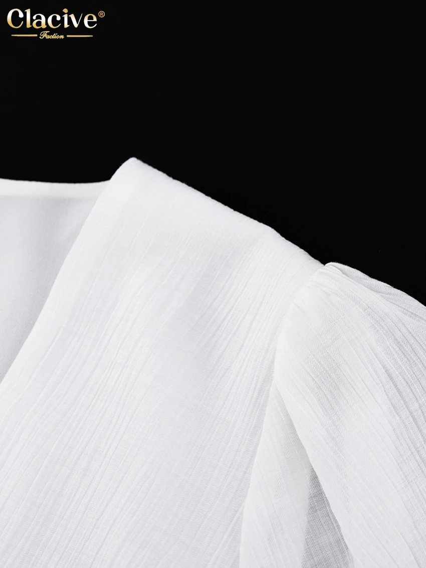Clacive White Sexy Single-Breasted Women'S Dress 2022 Elegant Short Sleeve V-Neck Party Dresses Lady Casual Slim Midi Dress