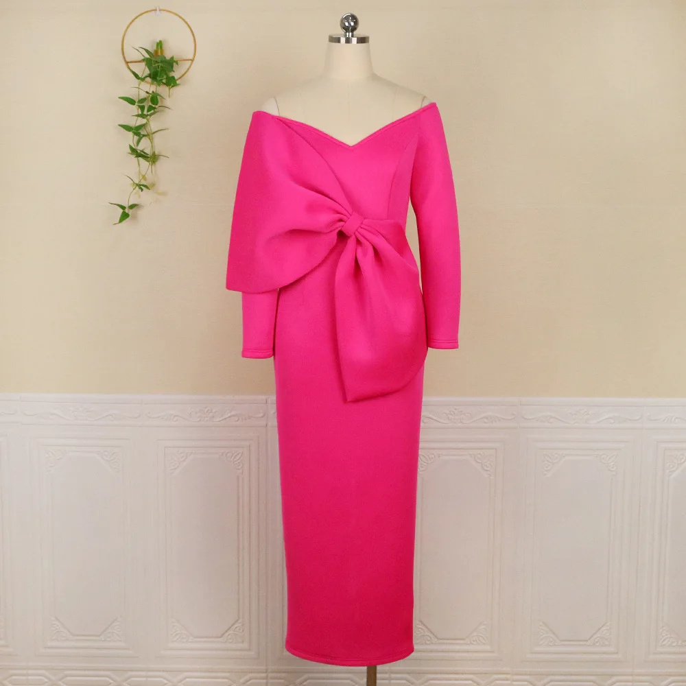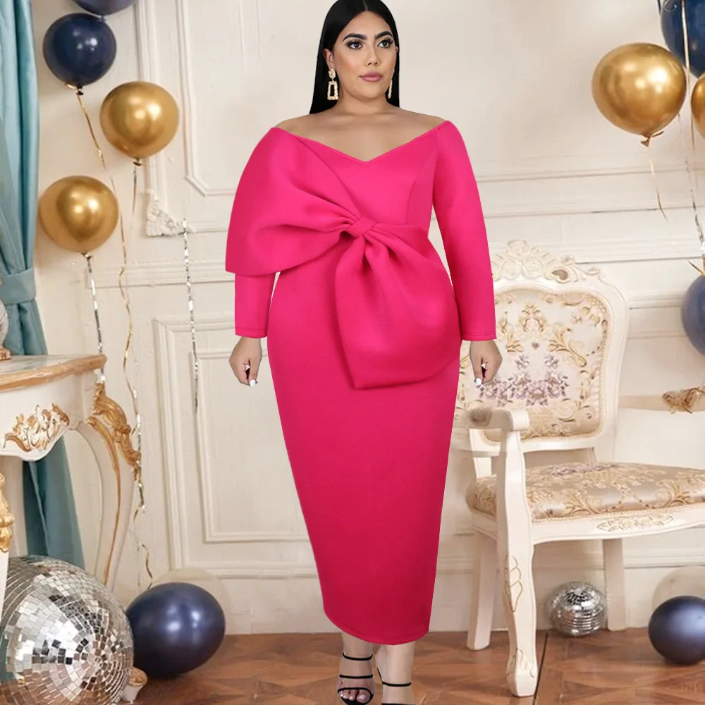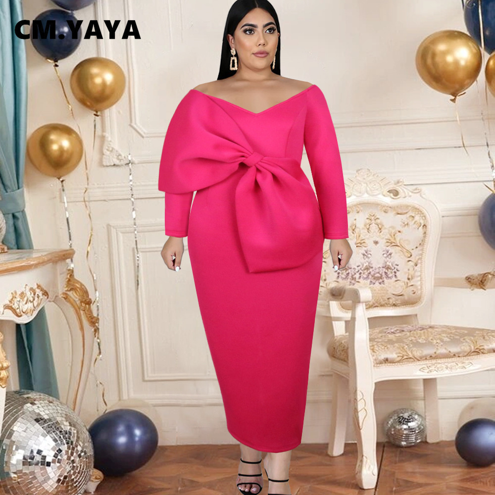 CM.YAYA 2022 Women Dress High Waist V-neck Full Sleeve Bow Elegant Fashion Solid night Club Party Long Maxi Dresses Spring