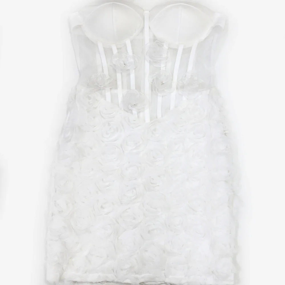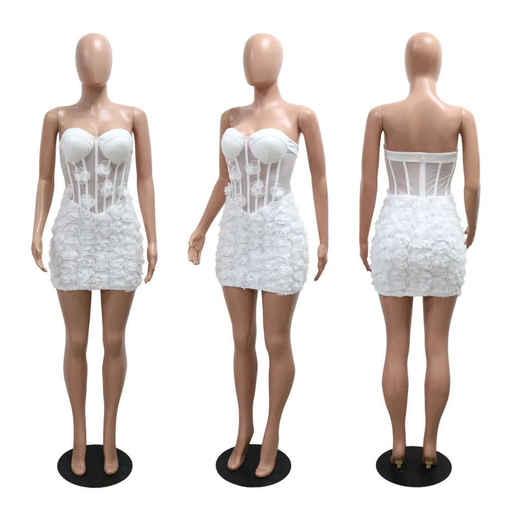 CM.YAYA 2024 Fall 3D Big Flower Sleeveless strapless Women Dress Sexy Party Street Club Mini Dresses Evening Bodycon Vestidos