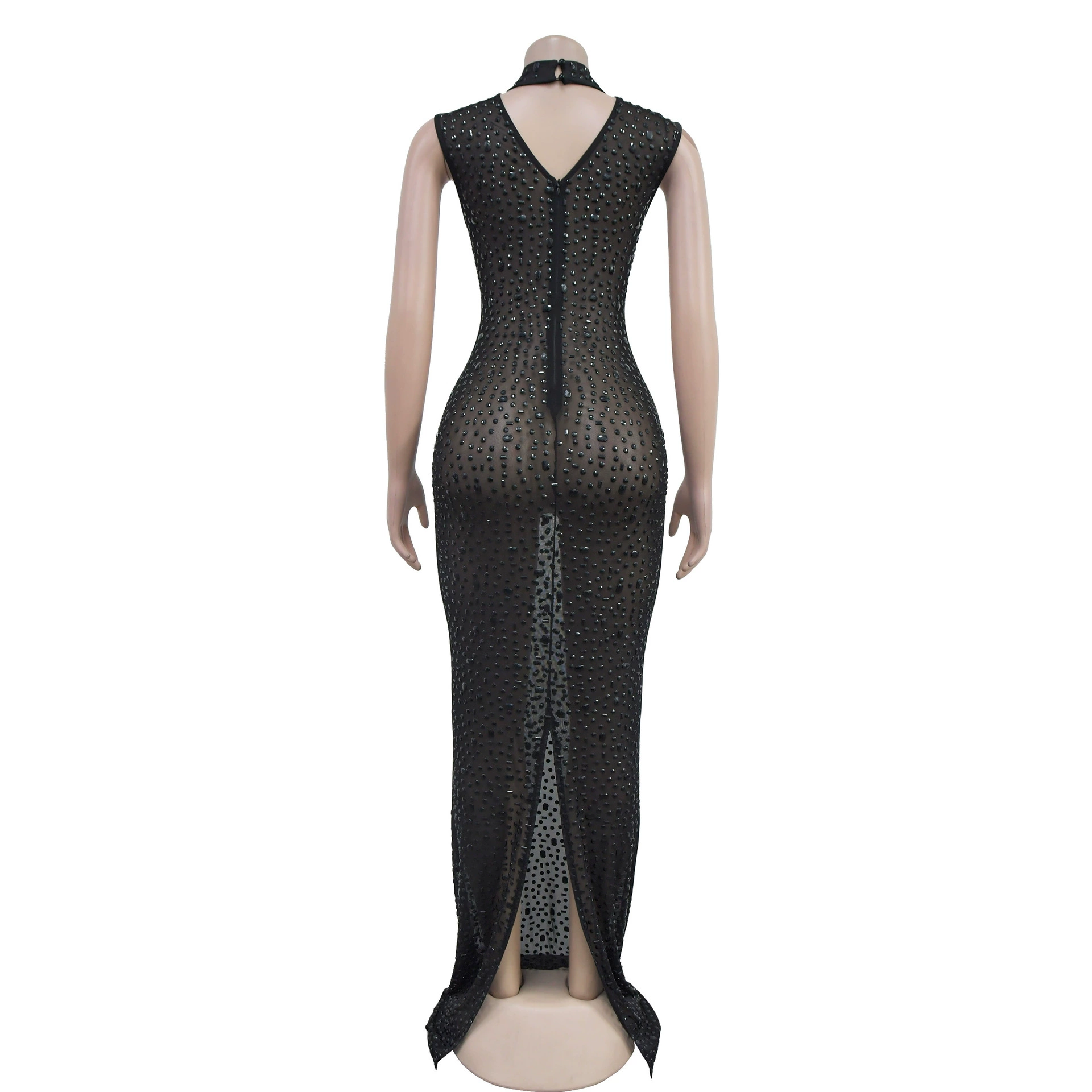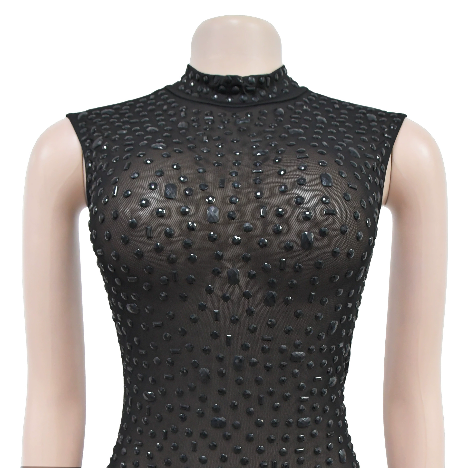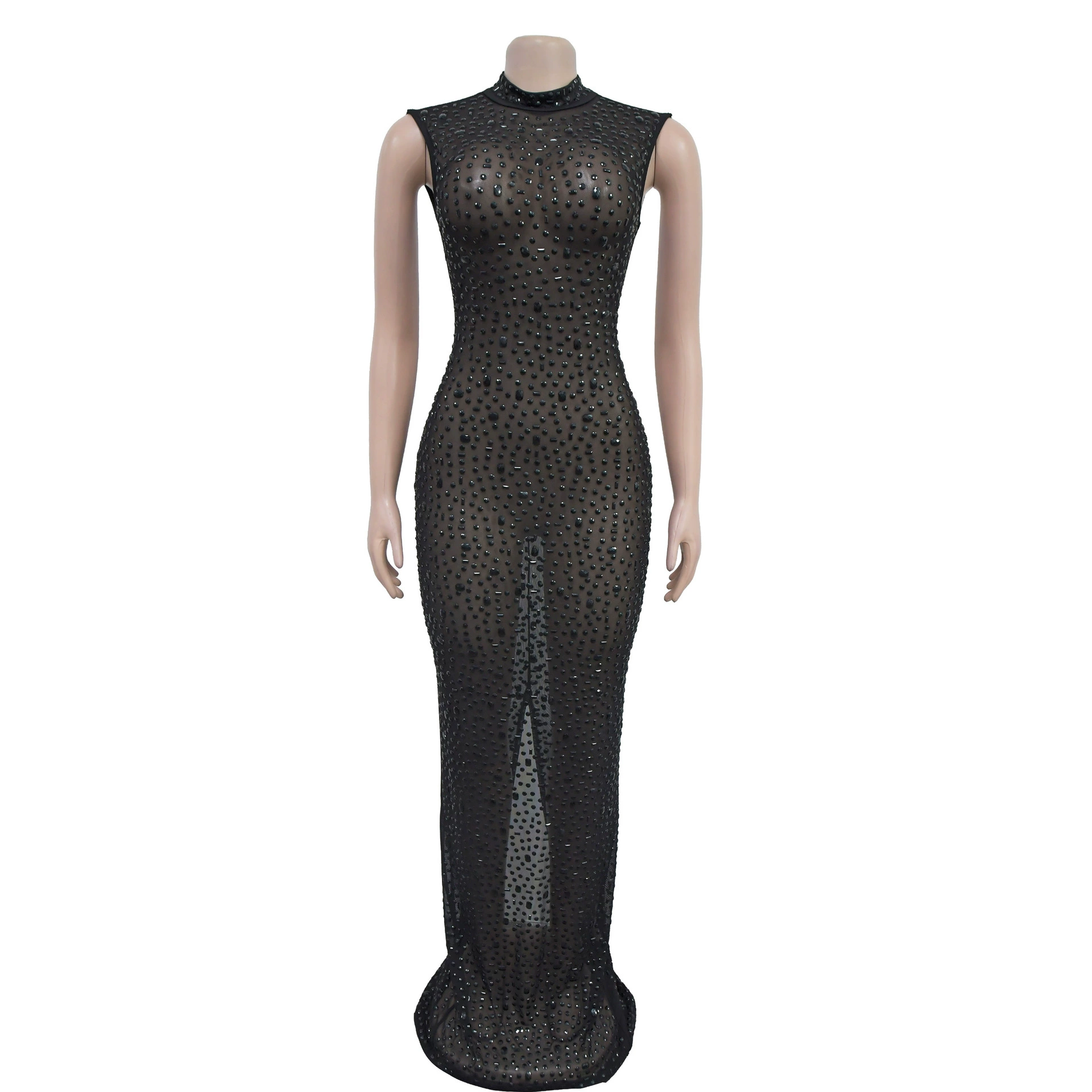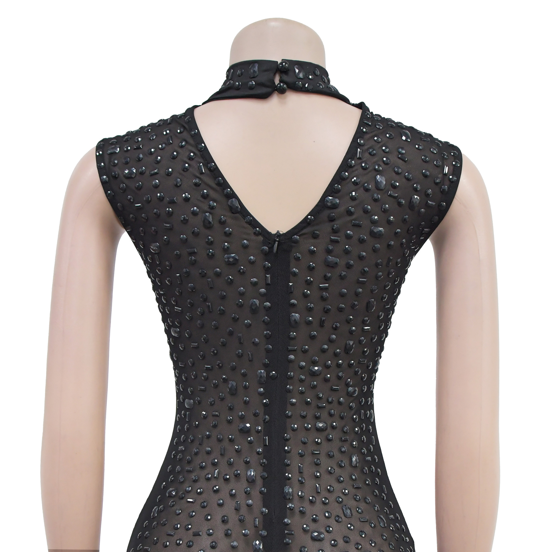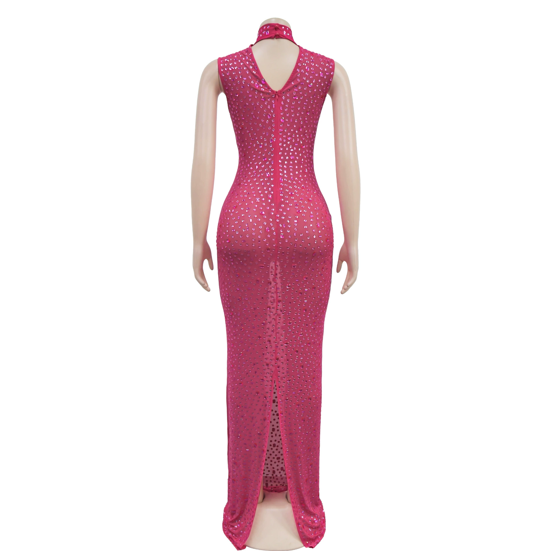 CM.YAYA 2024 Fall Diamonds Hot Rhinestones O-neck Women Sleeveless Bodycon Long Dress Birthday Party Evening Prom Maxi Dresses