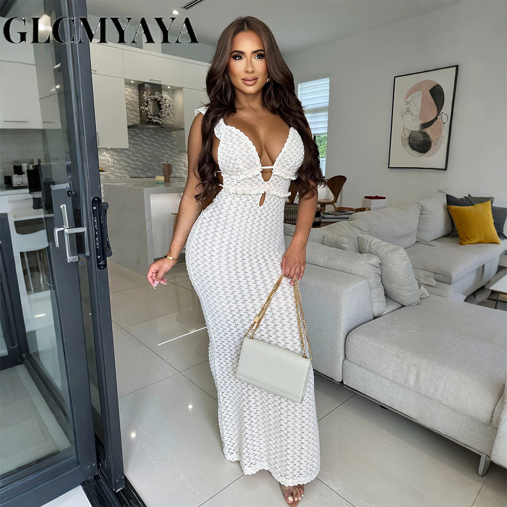 CM.YAYA 2025 Spring Diamonds Hot Rhinestones Cross V-neck Women Sleeveless Long Dress Birthday Party Evening Prom Maxi Dresses